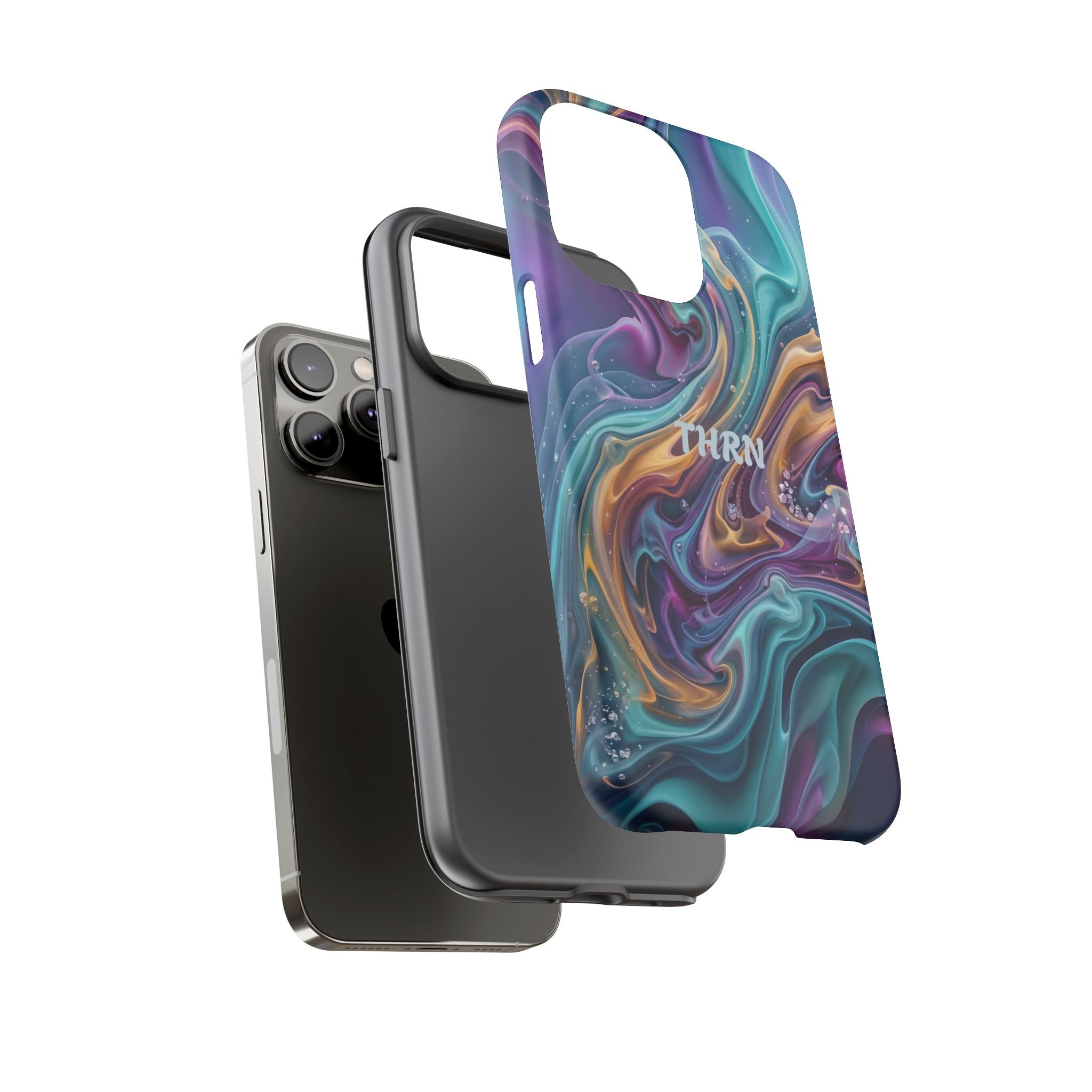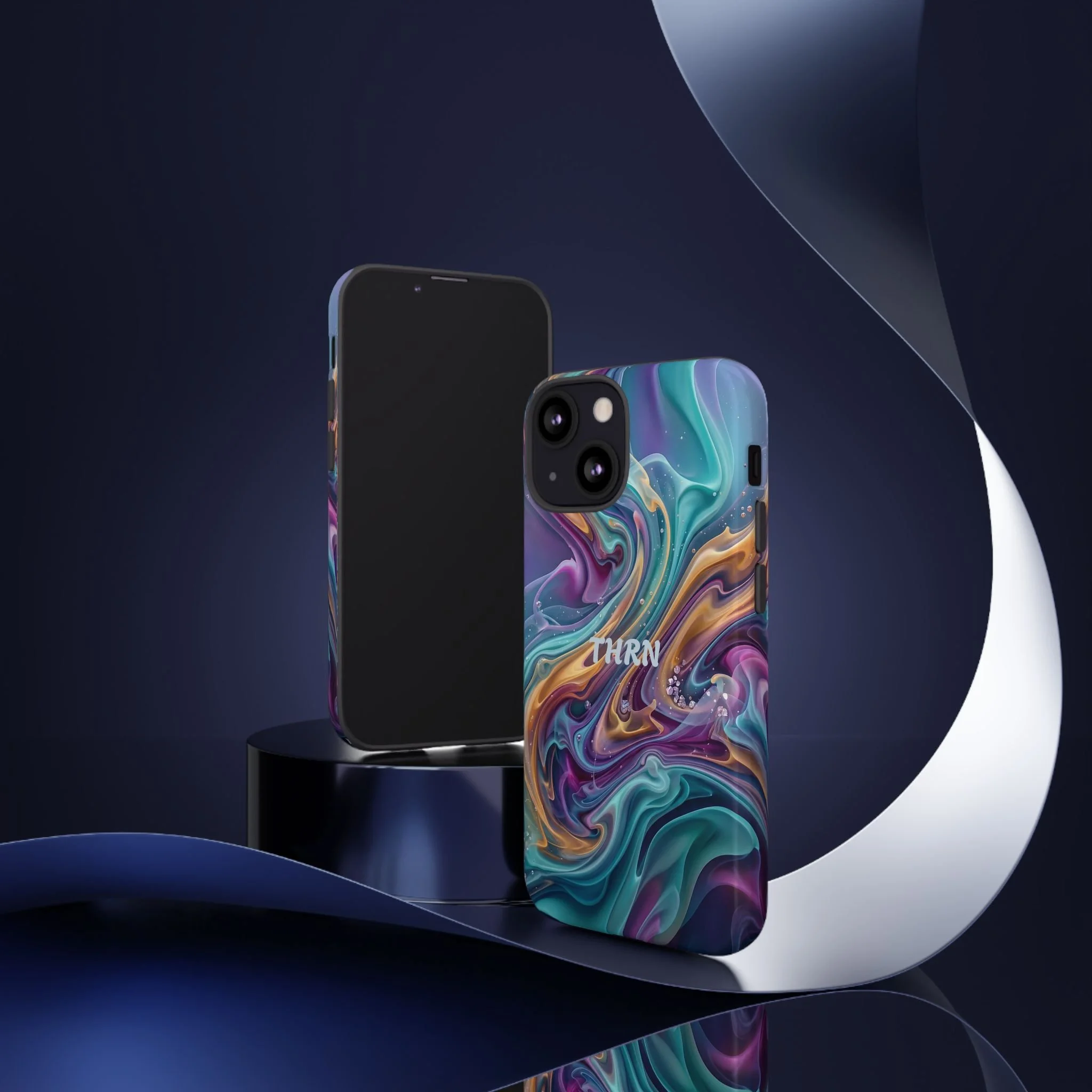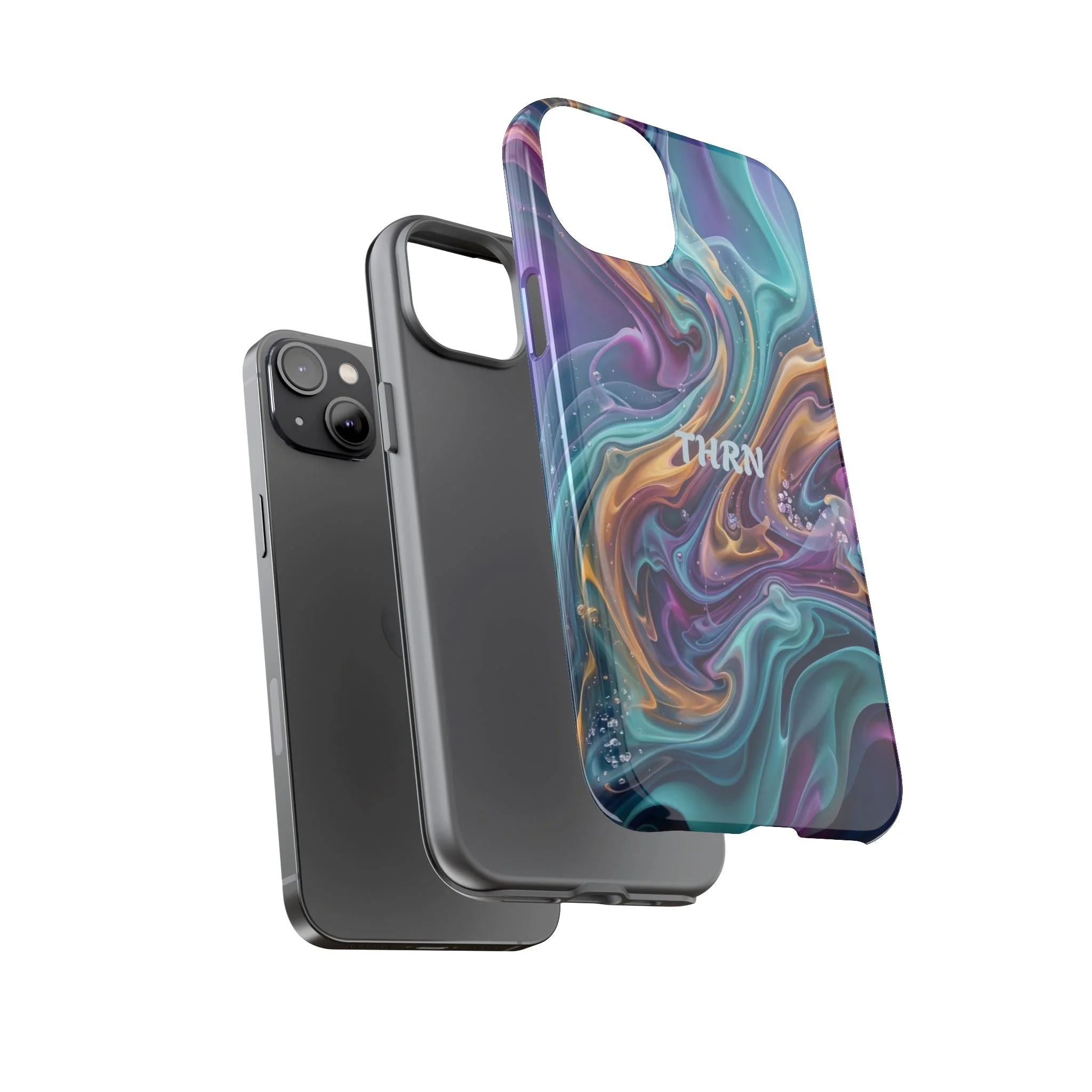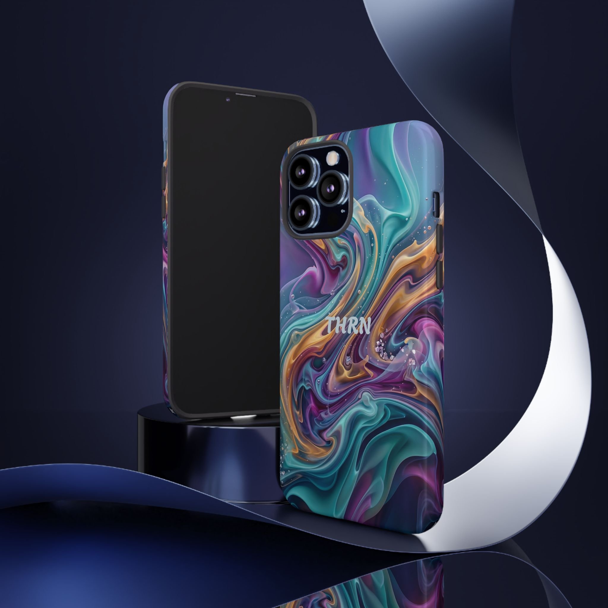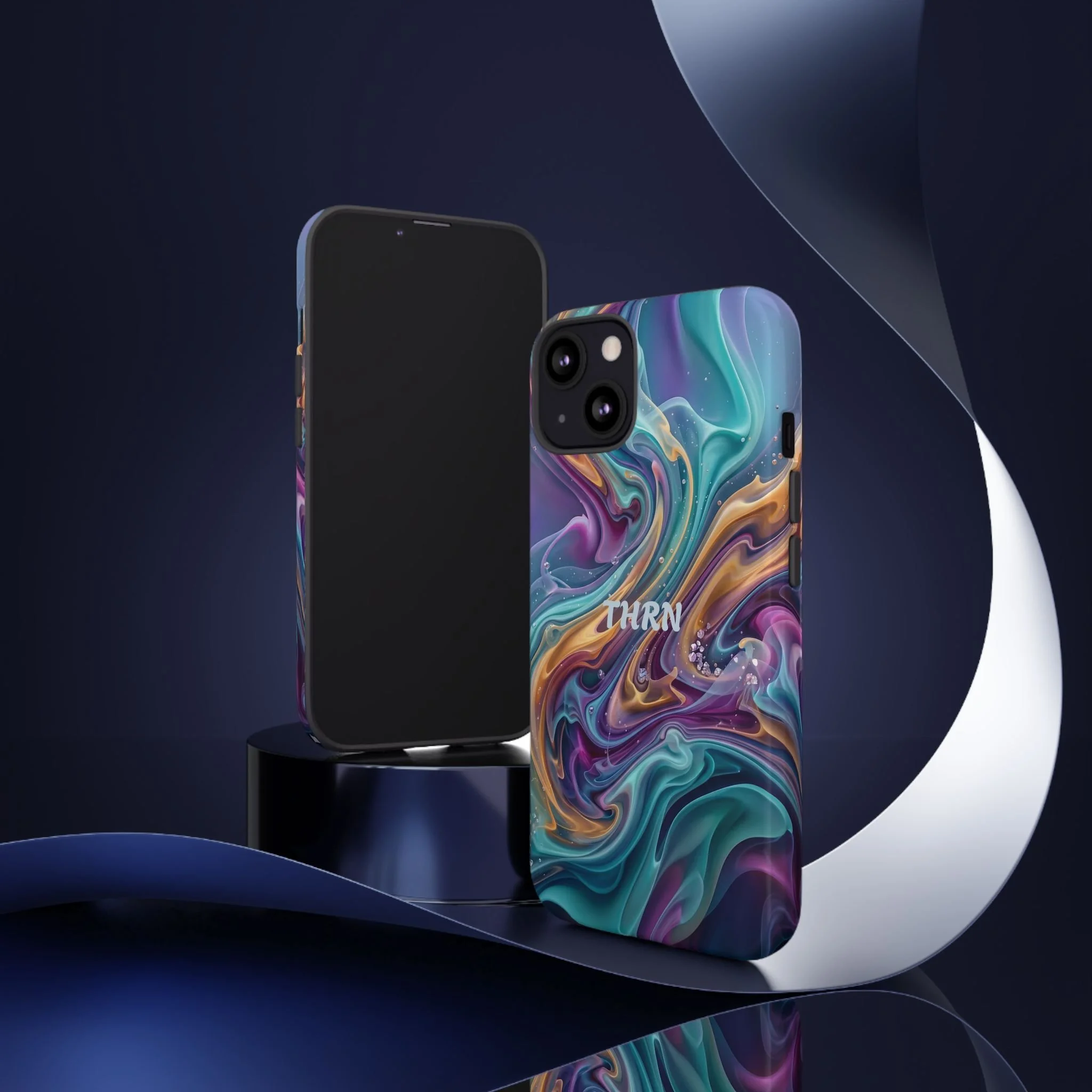 Carry a small piece of fluid art with you. This tough phone case wraps a vibrant swirl of teal, purple, and gold around your device in full-color, high-gloss or matte finishes. It feels solid in hand but cushions shocks with a soft TPU liner, while the rigid polycarbonate shell resists impacts and everyday wear. UV protection keeps the colors rich outdoors, and precise port cutouts preserve easy charging and use. Lightweight and slim, it blends art-forward style with dependable protection for daily life.