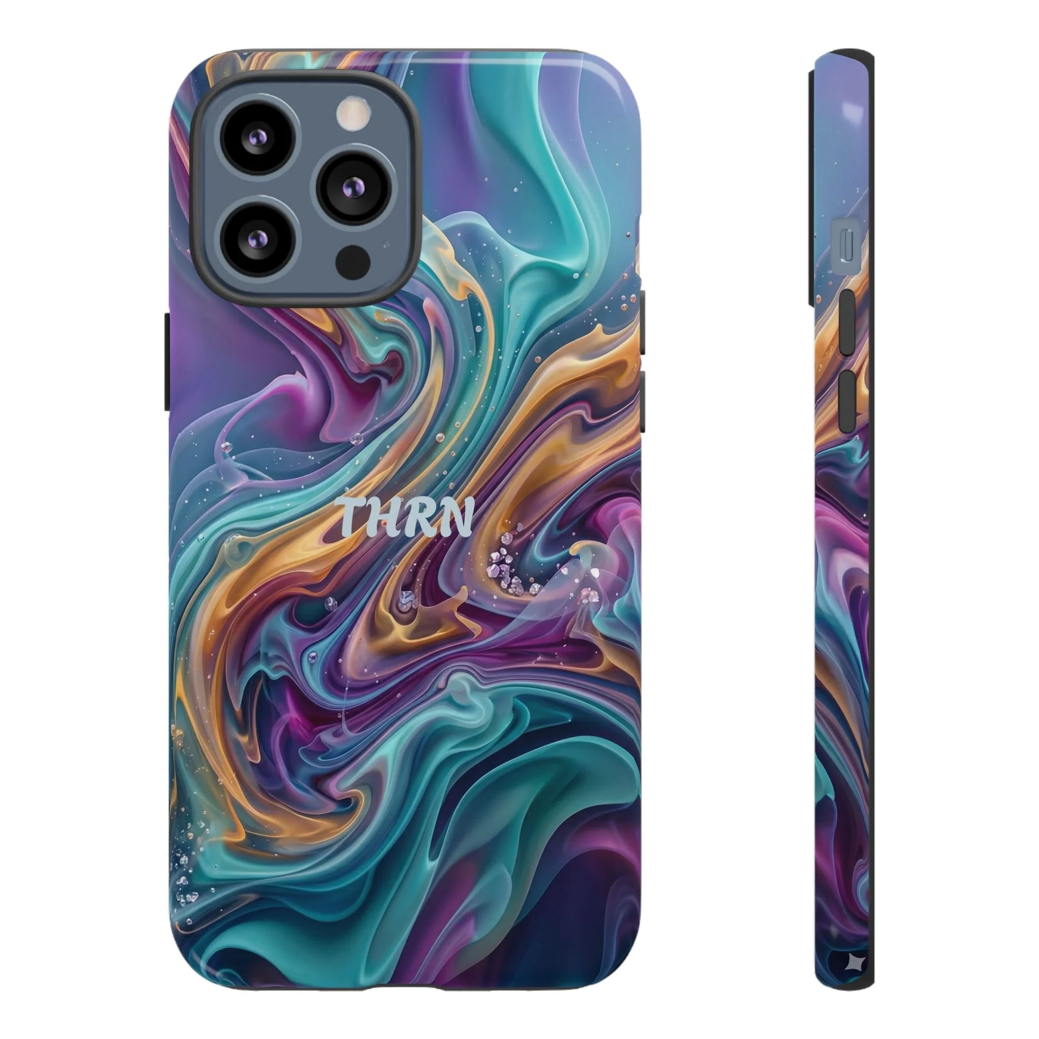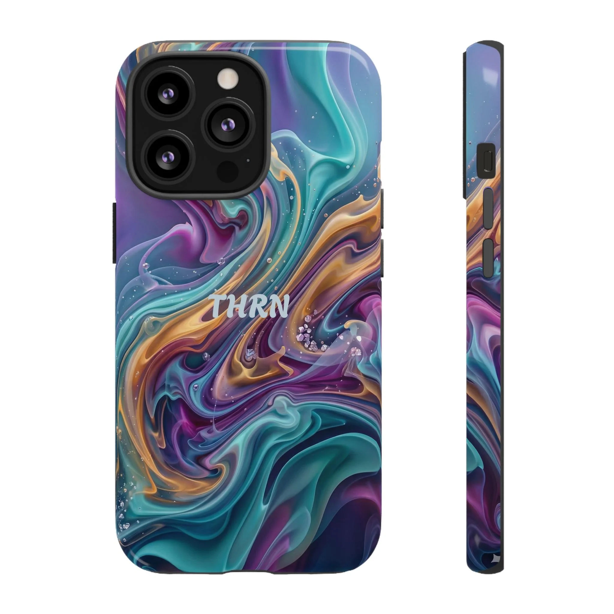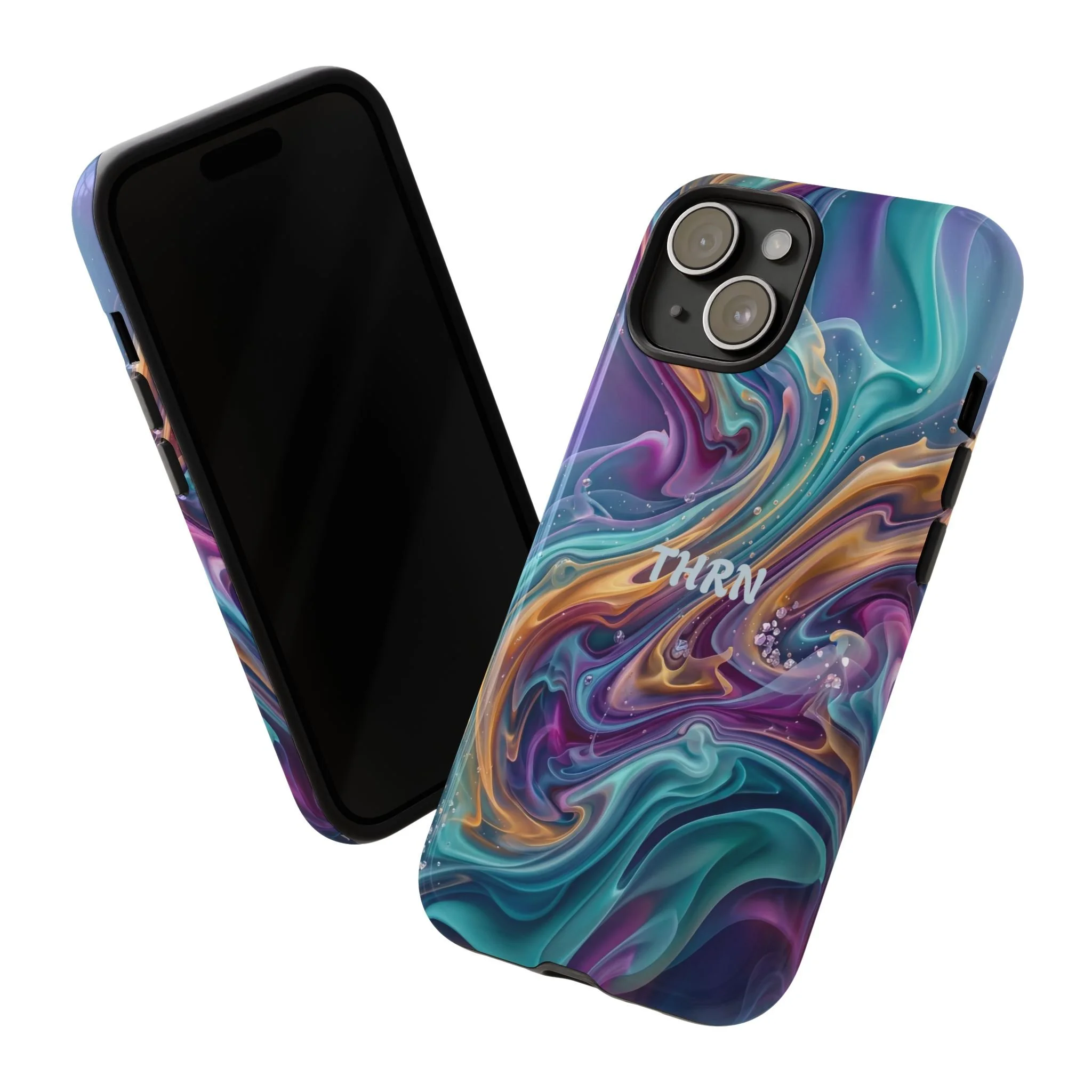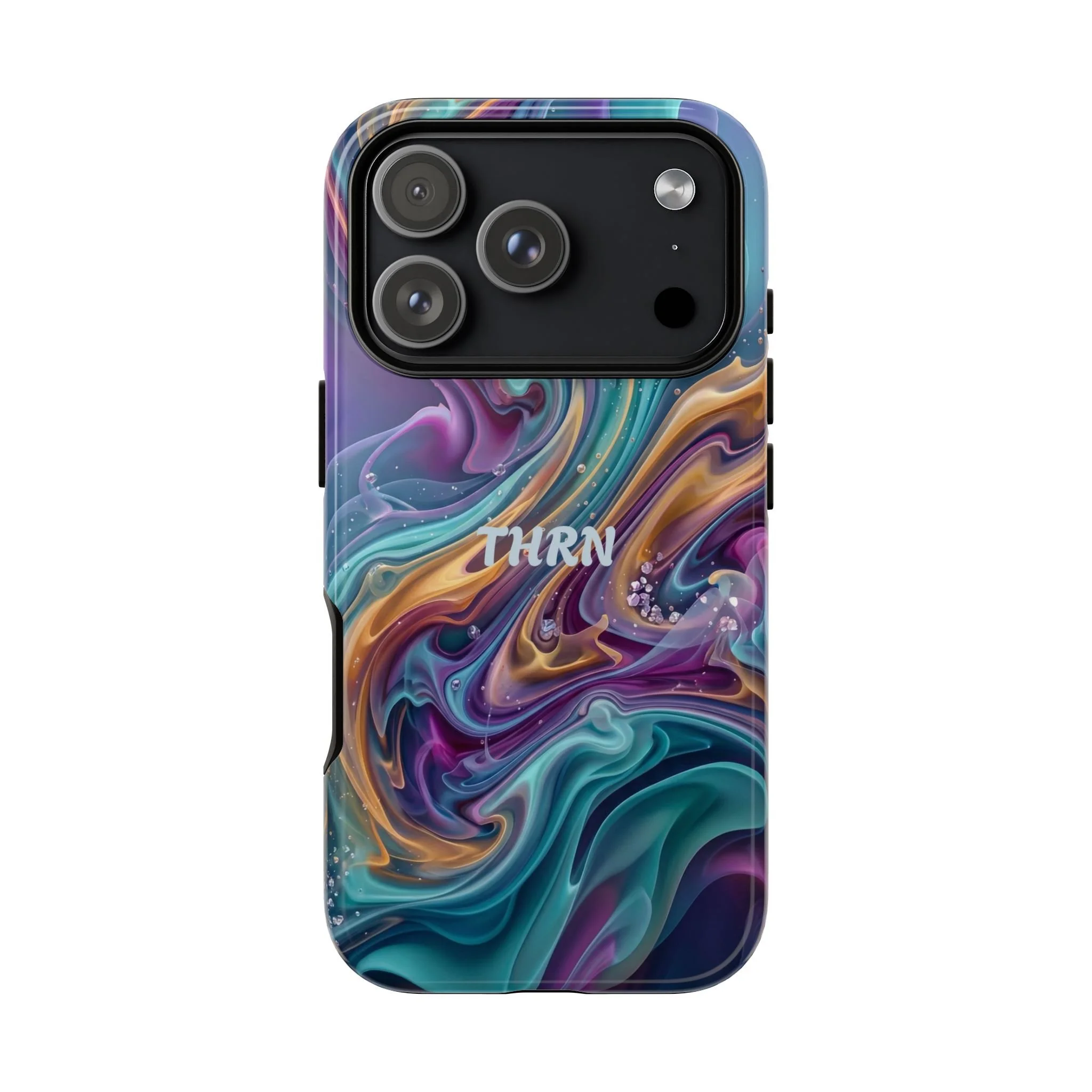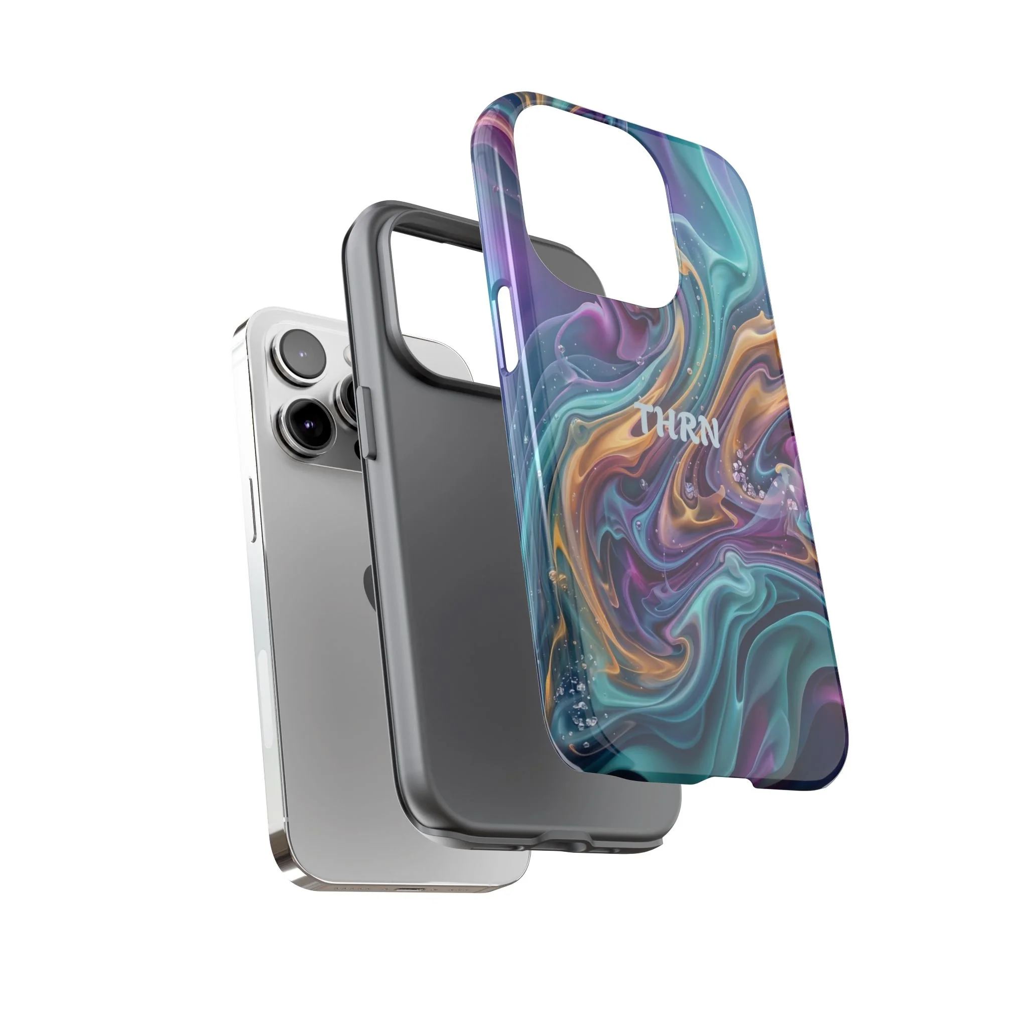 Carry a small piece of fluid art with you. This tough phone case wraps a vibrant swirl of teal, purple, and gold around your device in full-color, high-gloss or matte finishes. It feels solid in hand but cushions shocks with a soft TPU liner, while the rigid polycarbonate shell resists impacts and everyday wear. UV protection keeps the colors rich outdoors, and precise port cutouts preserve easy charging and use. Lightweight and slim, it blends art-forward style with dependable protection for daily life.