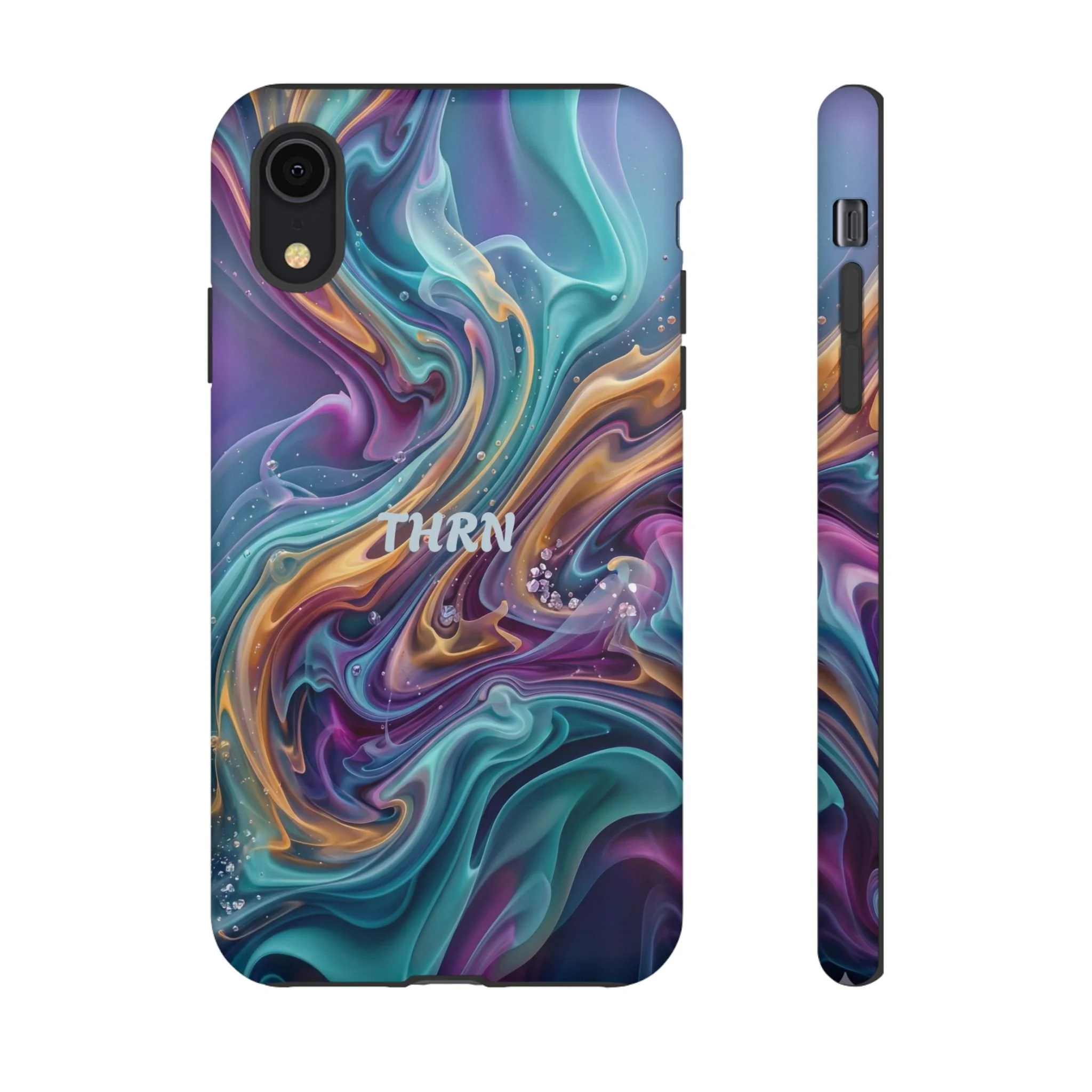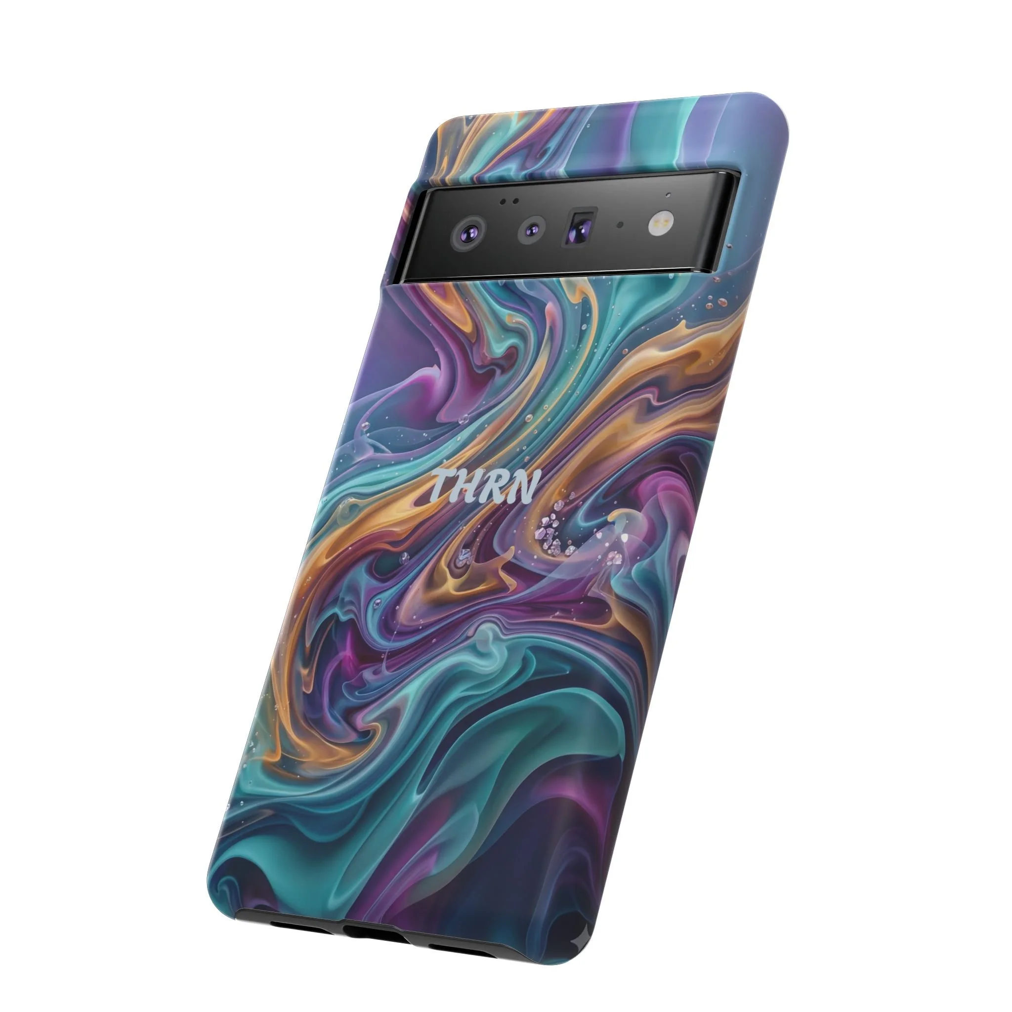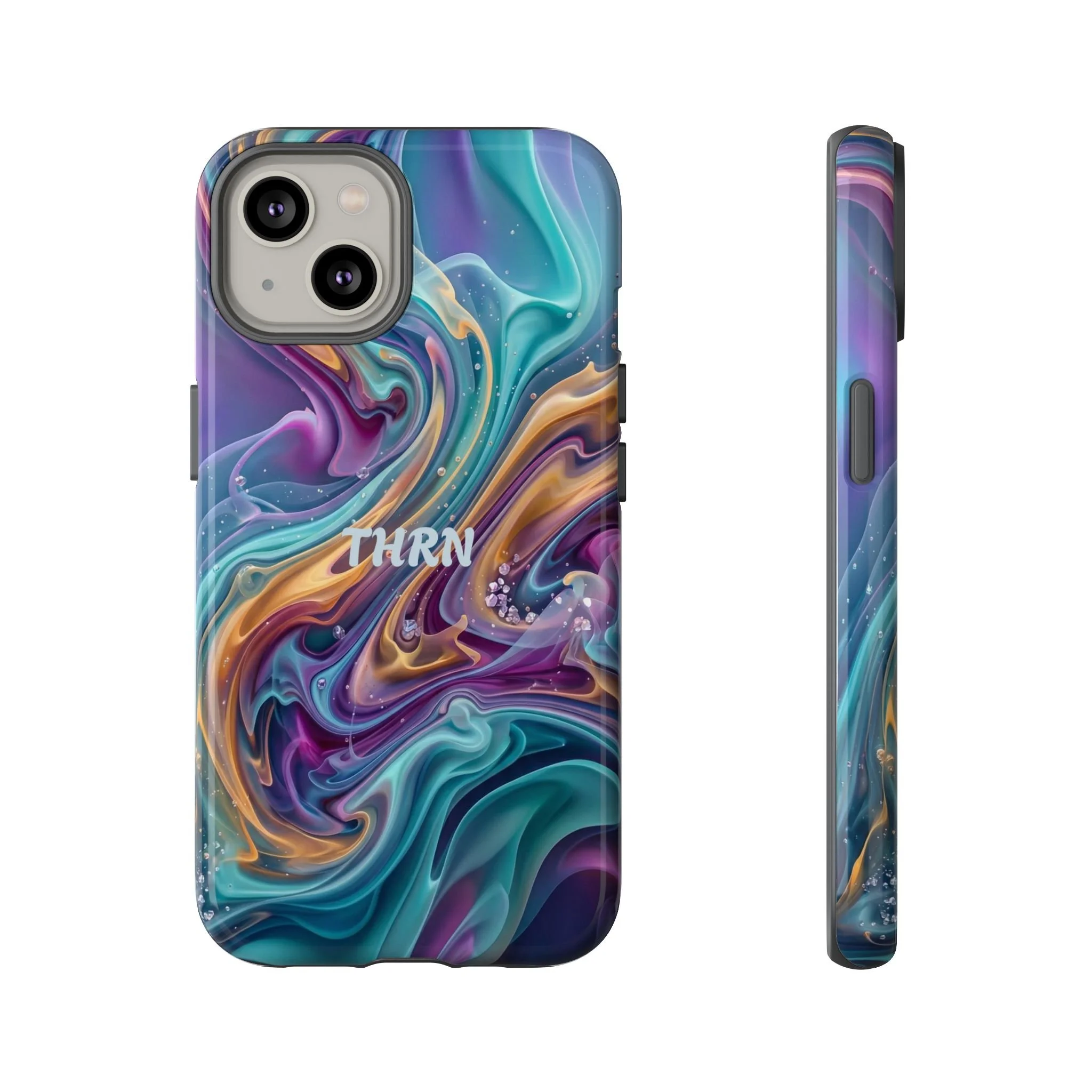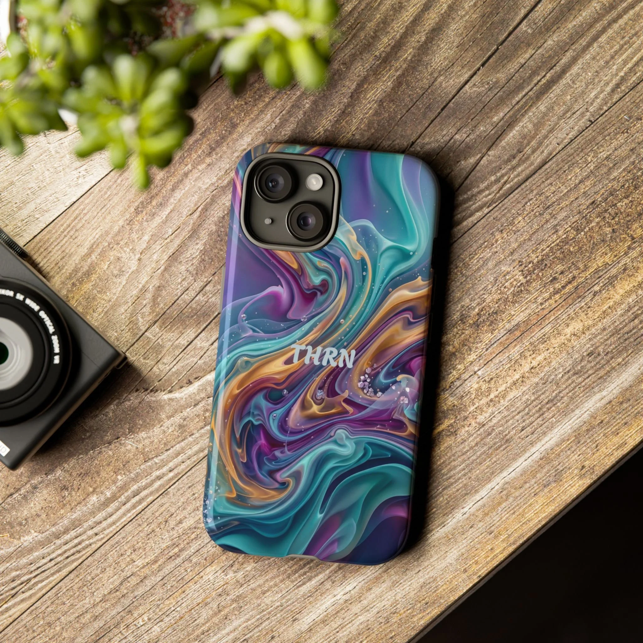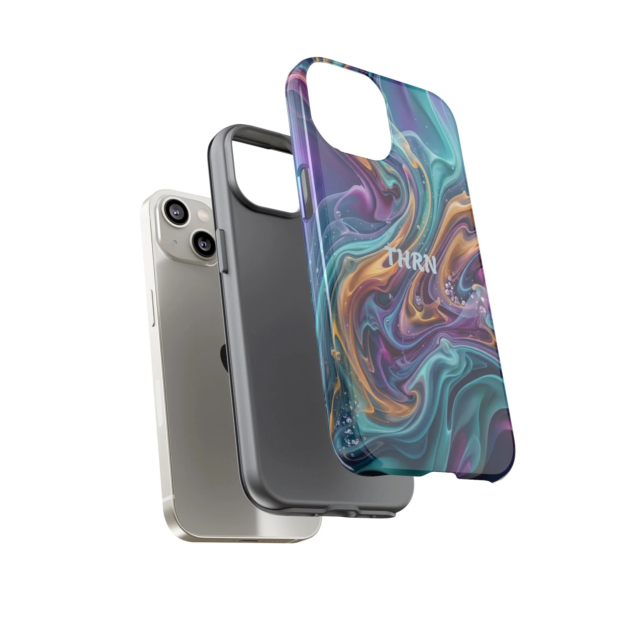 Carry a small piece of fluid art with you. This tough phone case wraps a vibrant swirl of teal, purple, and gold around your device in full-color, high-gloss or matte finishes. It feels solid in hand but cushions shocks with a soft TPU liner, while the rigid polycarbonate shell resists impacts and everyday wear. UV protection keeps the colors rich outdoors, and precise port cutouts preserve easy charging and use. Lightweight and slim, it blends art-forward style with dependable protection for daily life.