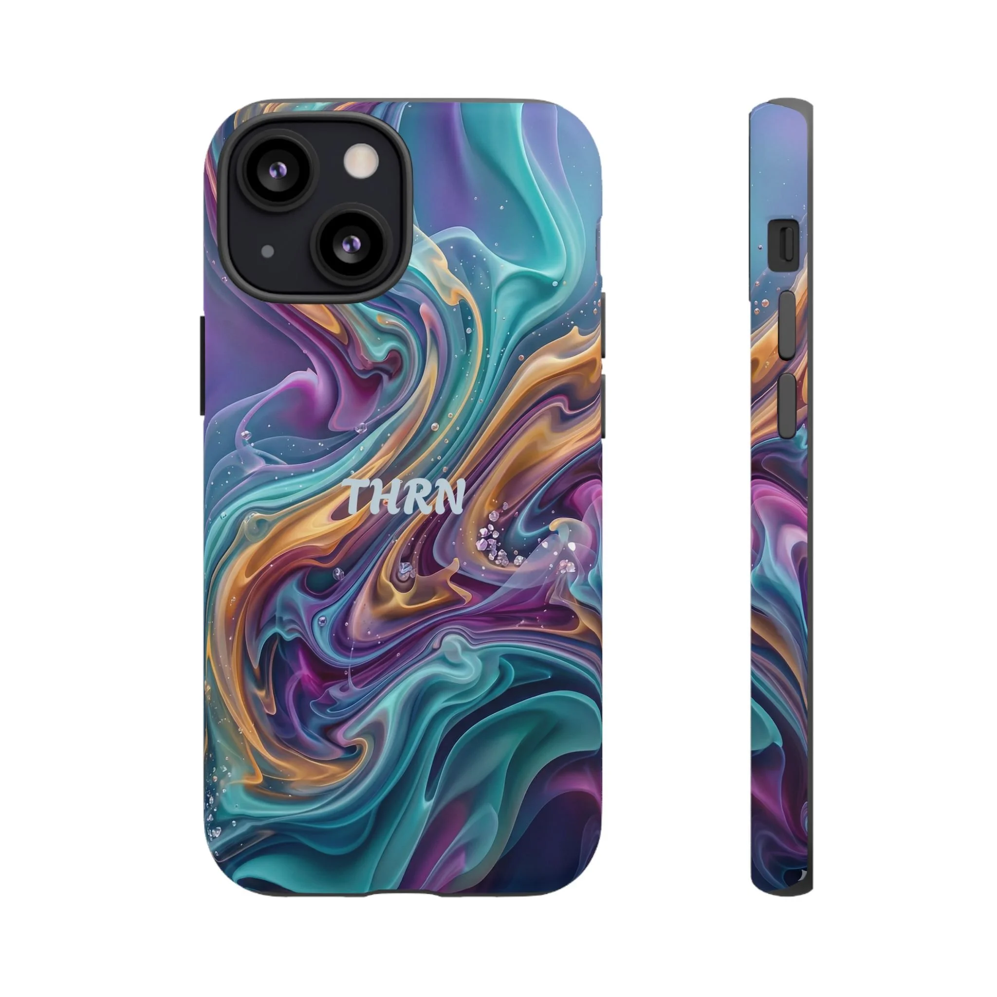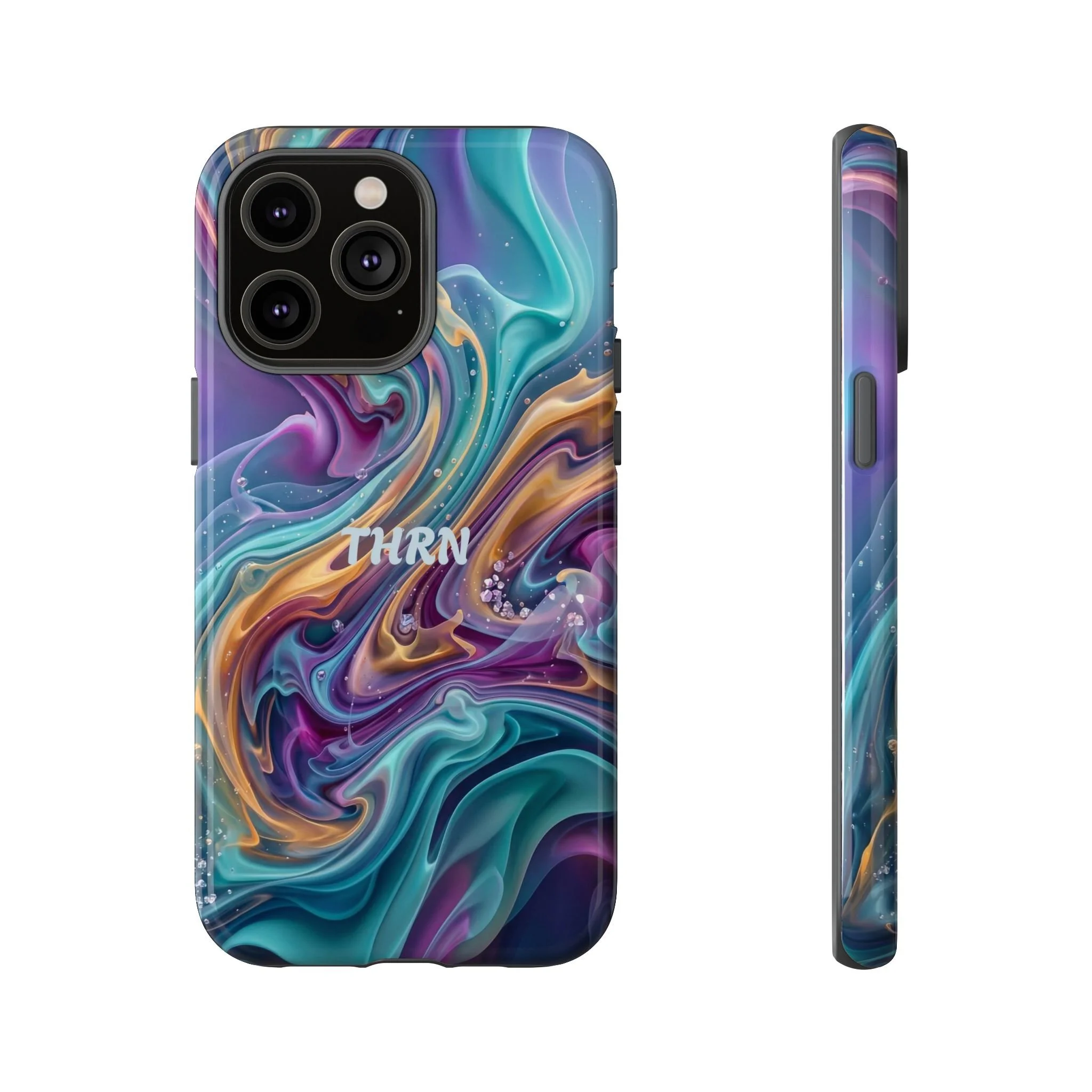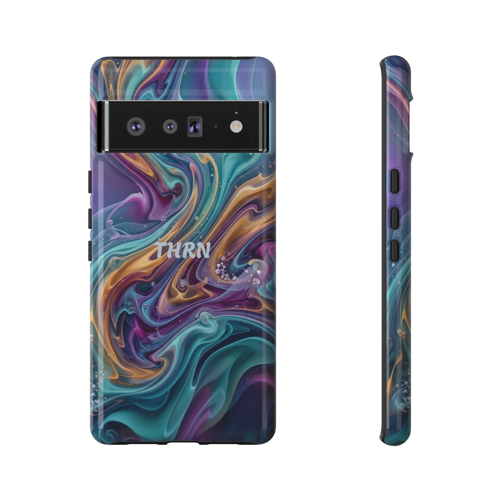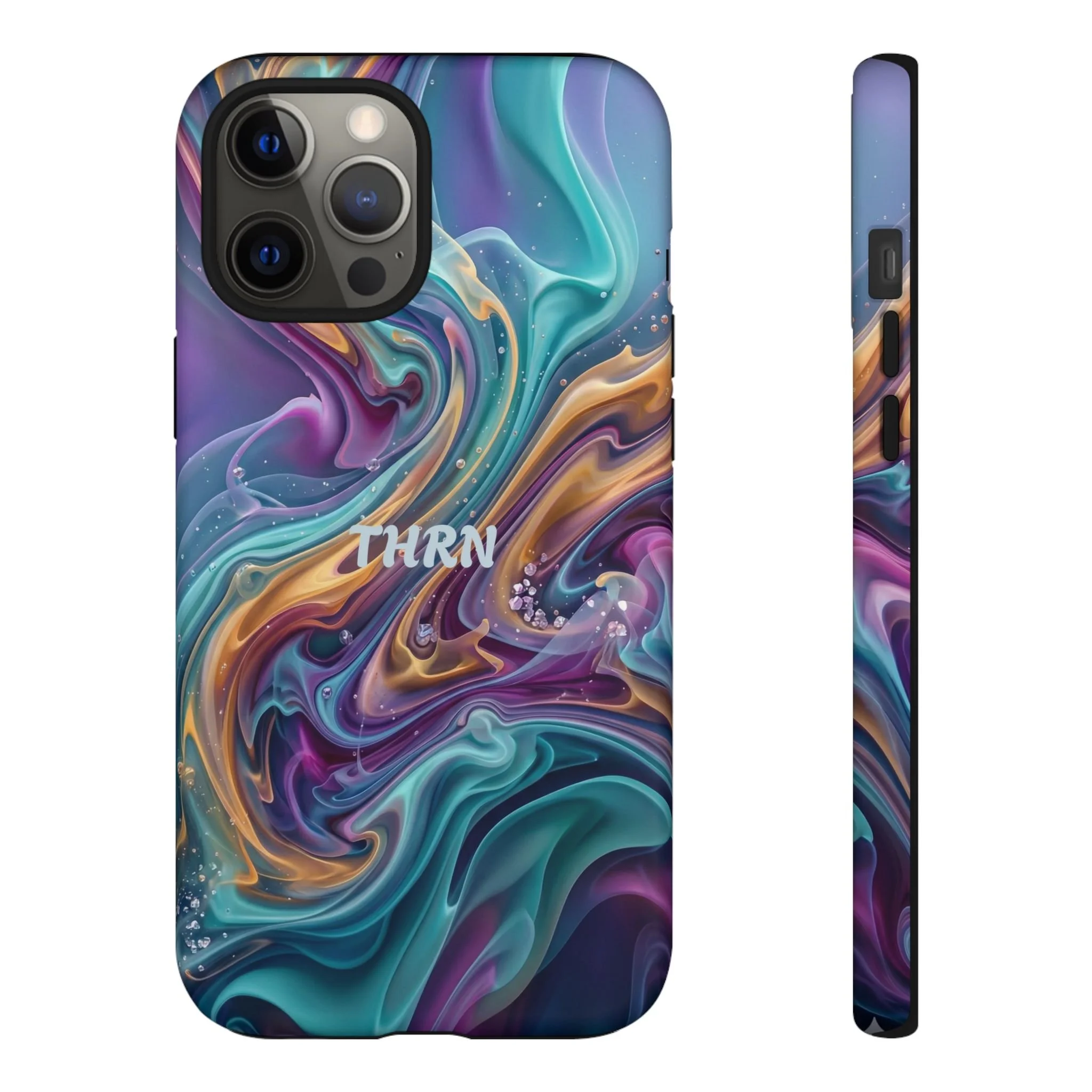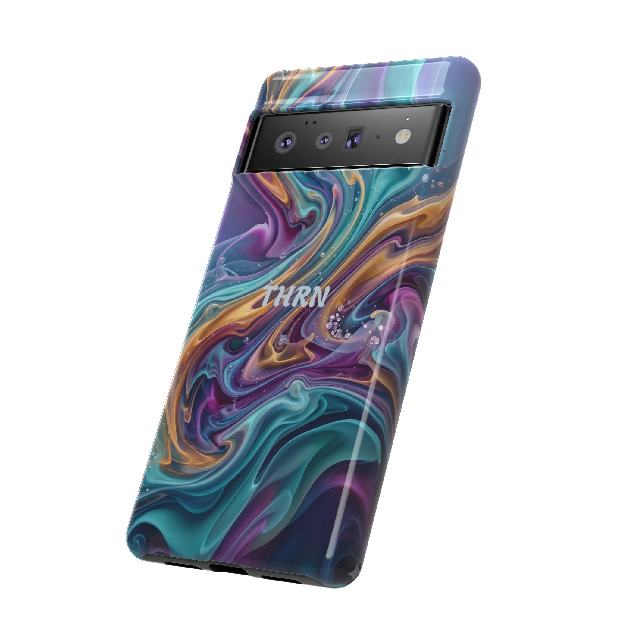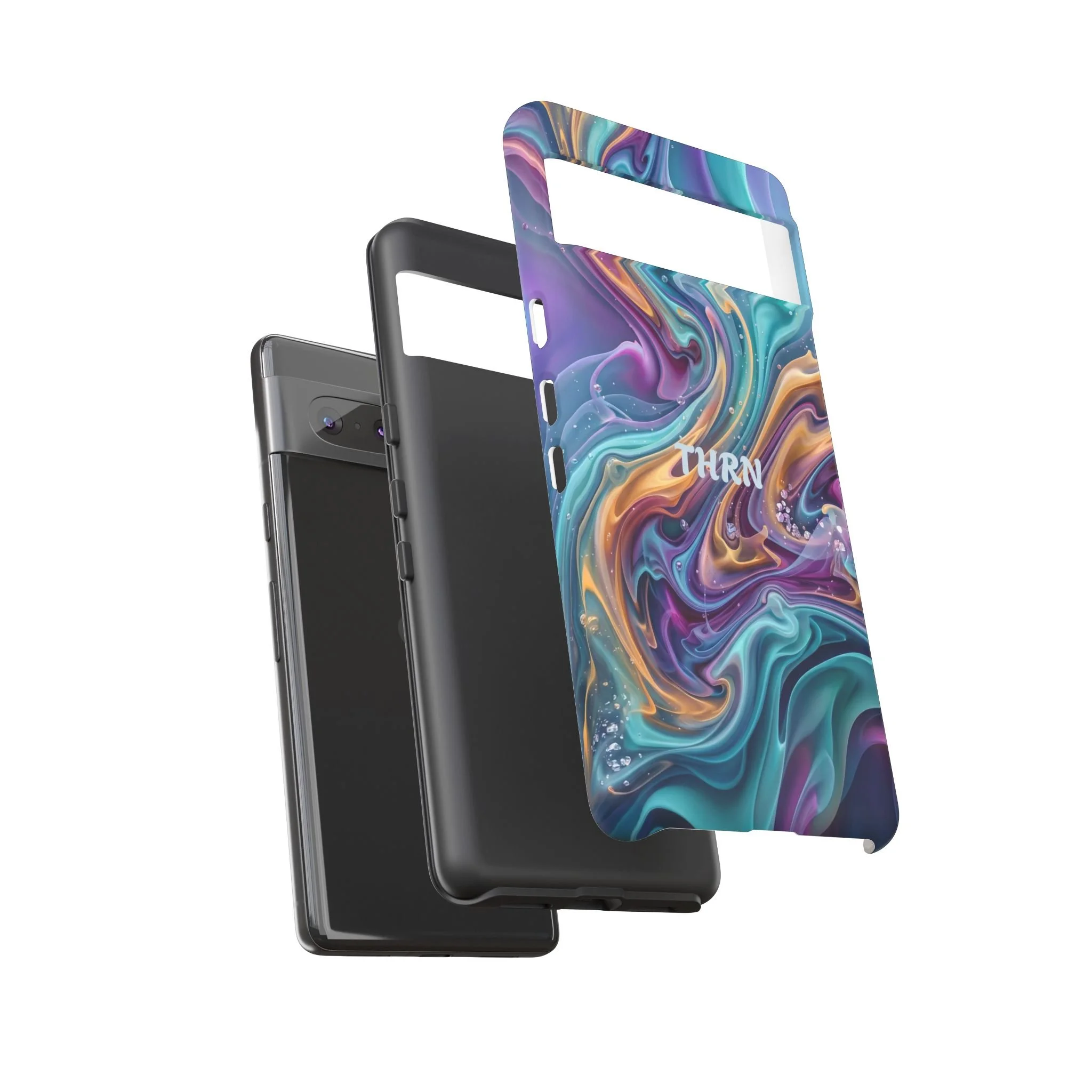 Carry a small piece of fluid art with you. This tough phone case wraps a vibrant swirl of teal, purple, and gold around your device in full-color, high-gloss or matte finishes. It feels solid in hand but cushions shocks with a soft TPU liner, while the rigid polycarbonate shell resists impacts and everyday wear. UV protection keeps the colors rich outdoors, and precise port cutouts preserve easy charging and use. Lightweight and slim, it blends art-forward style with dependable protection for daily life.