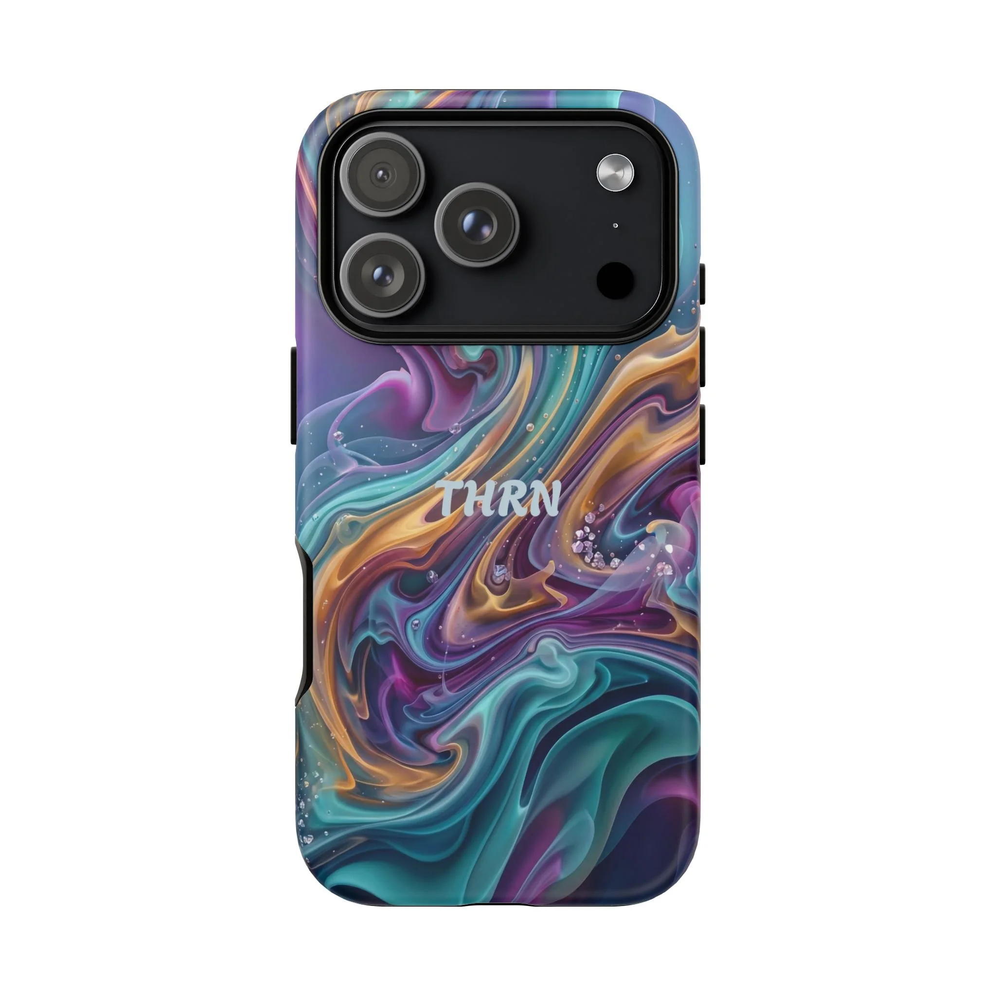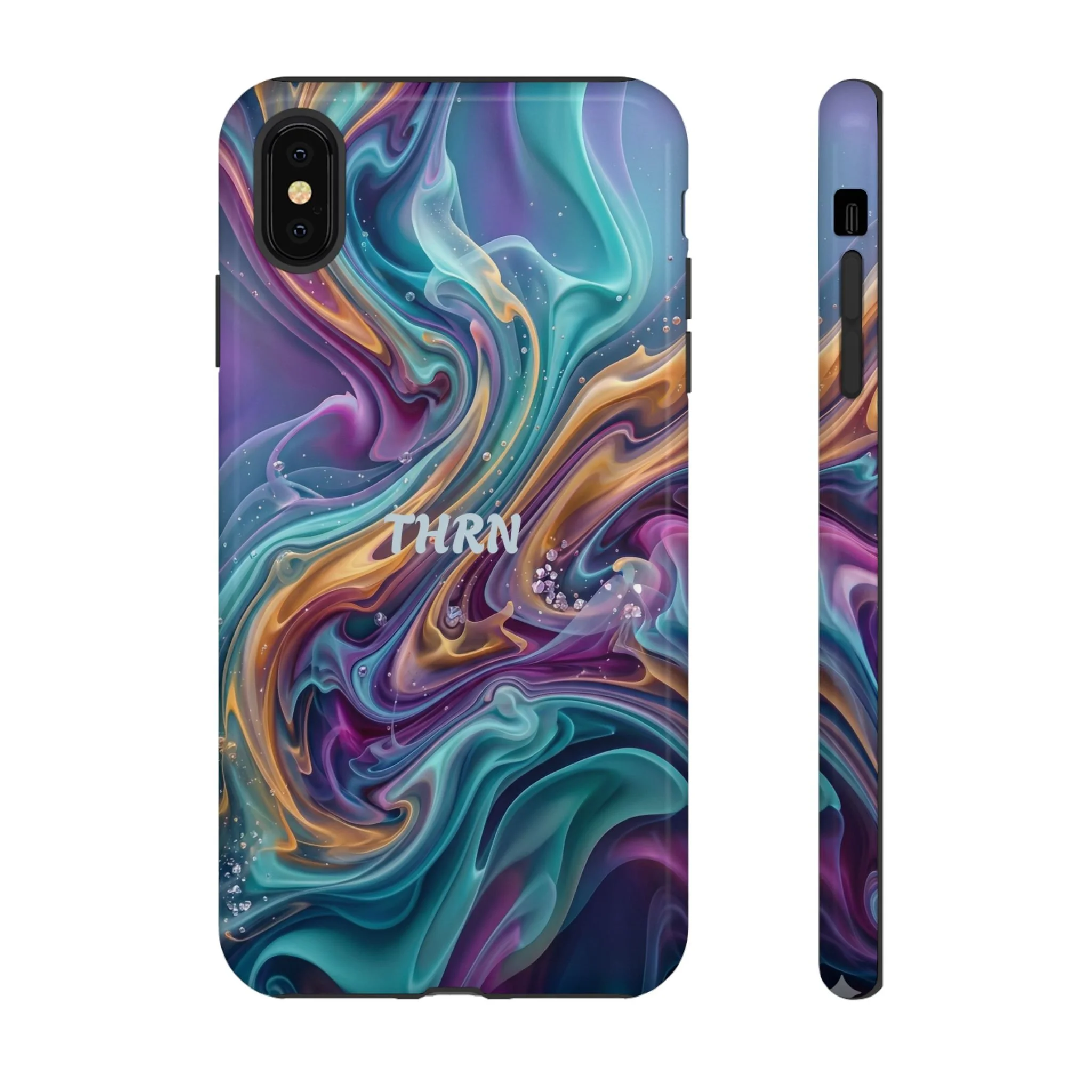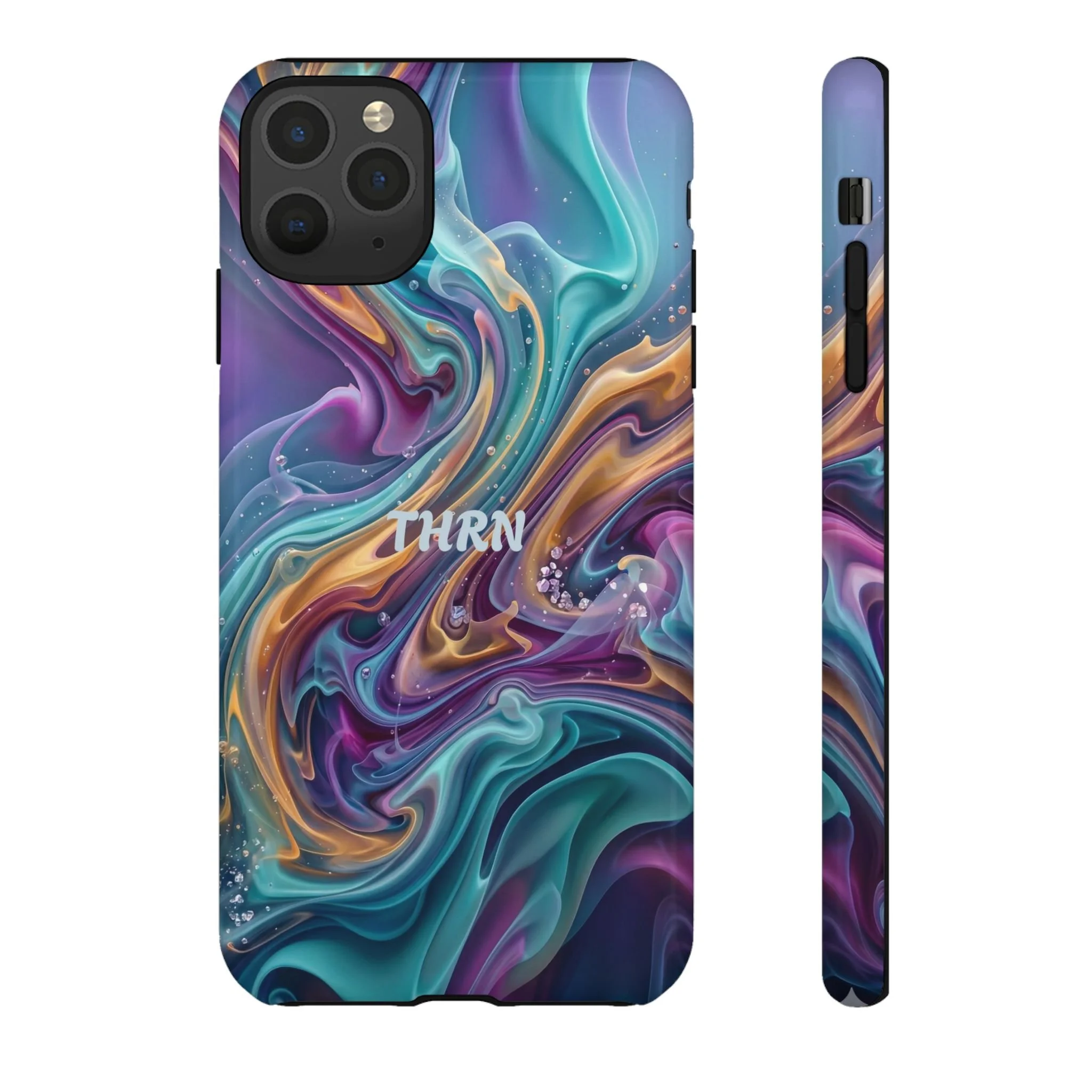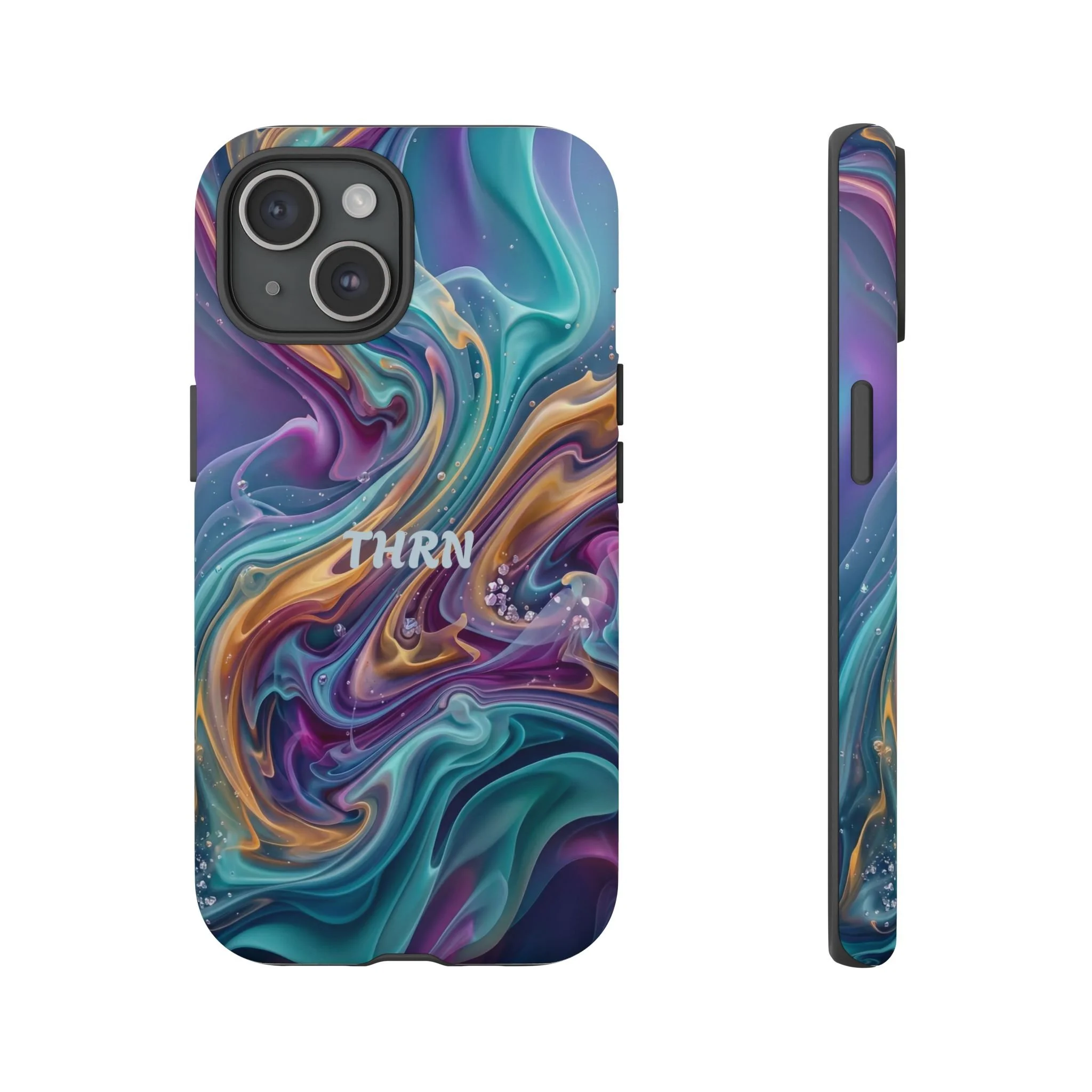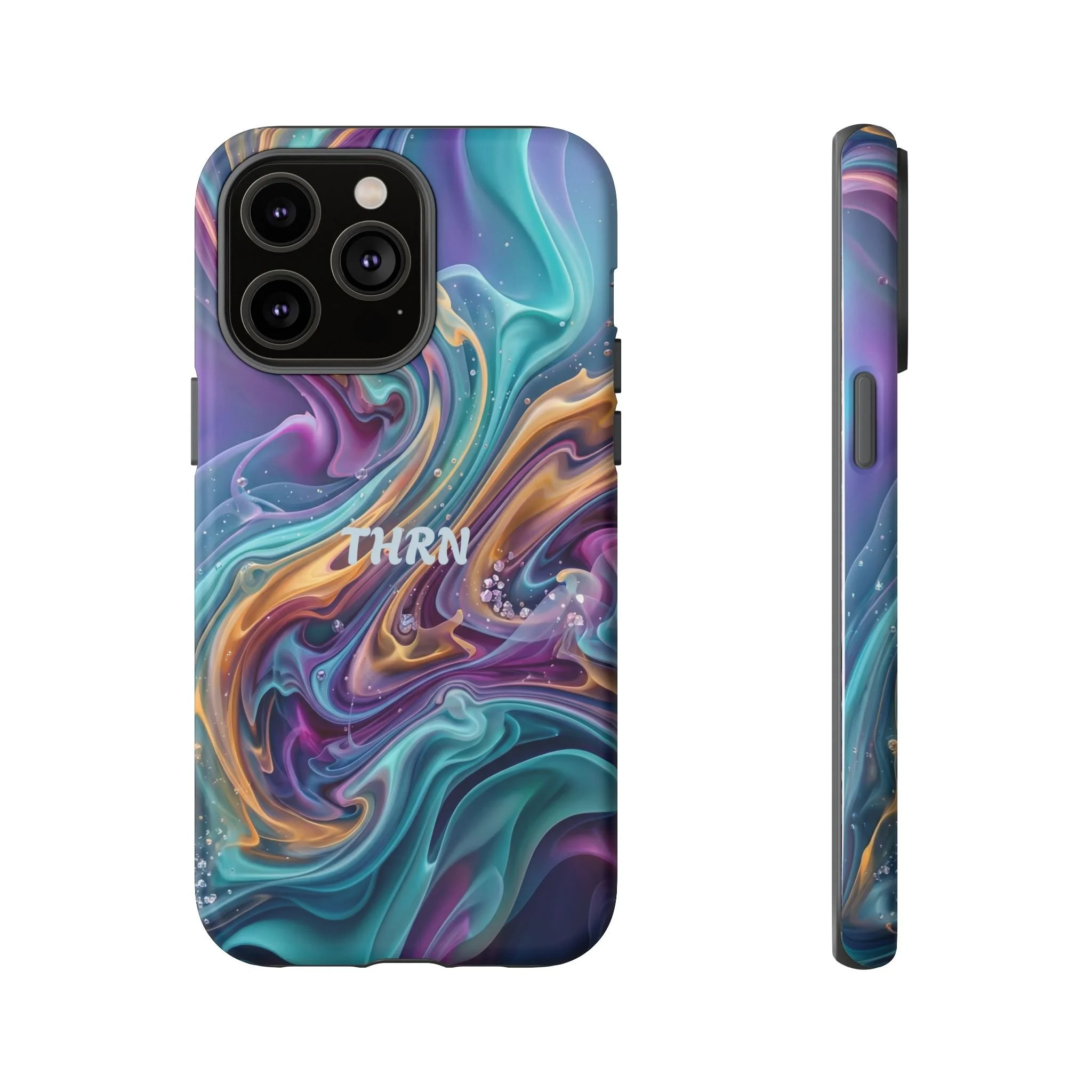 Carry a small piece of fluid art with you. This tough phone case wraps a vibrant swirl of teal, purple, and gold around your device in full-color, high-gloss or matte finishes. It feels solid in hand but cushions shocks with a soft TPU liner, while the rigid polycarbonate shell resists impacts and everyday wear. UV protection keeps the colors rich outdoors, and precise port cutouts preserve easy charging and use. Lightweight and slim, it blends art-forward style with dependable protection for daily life.