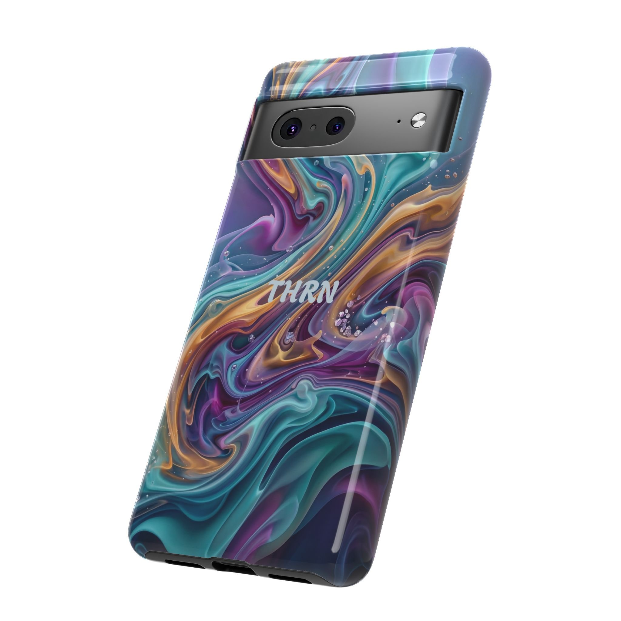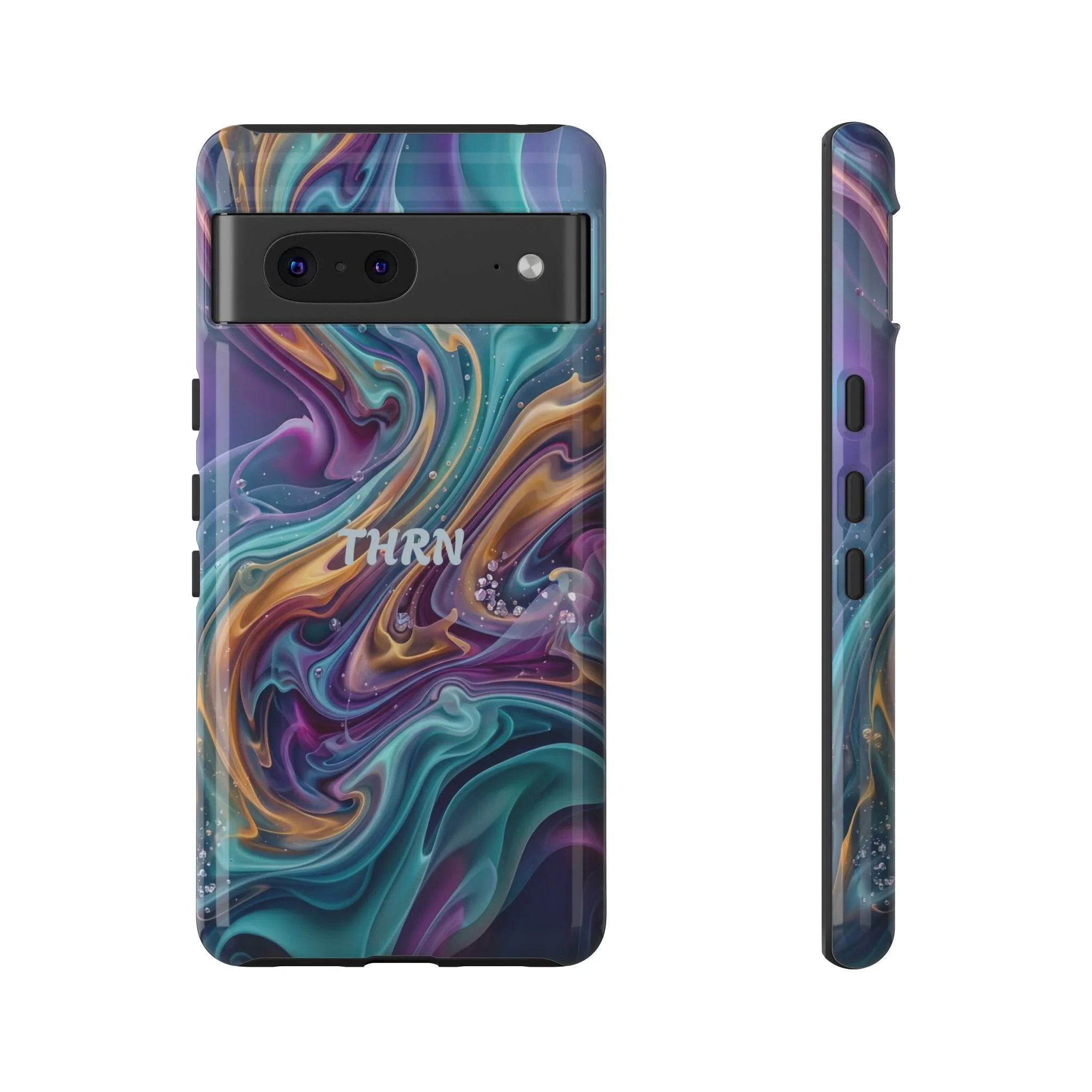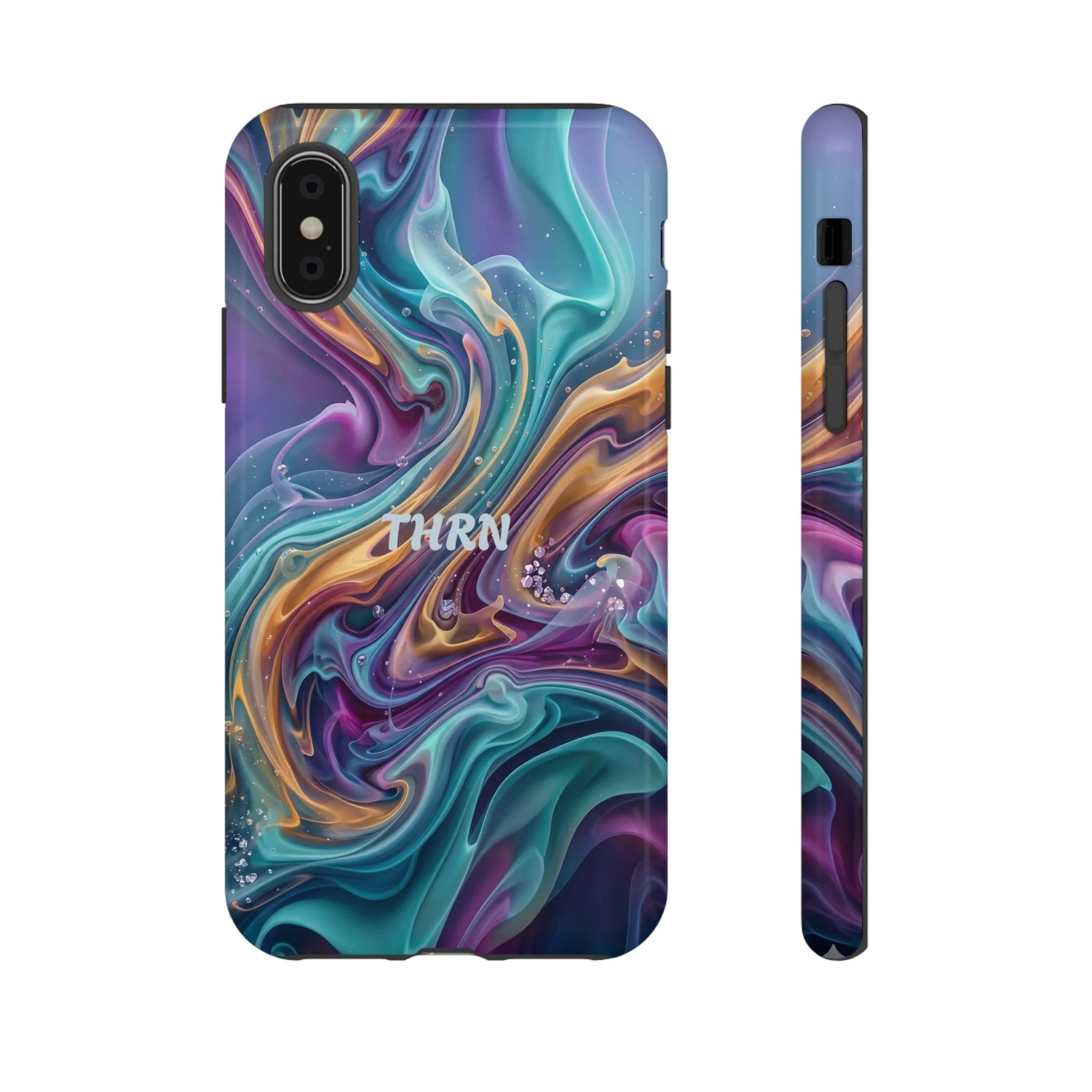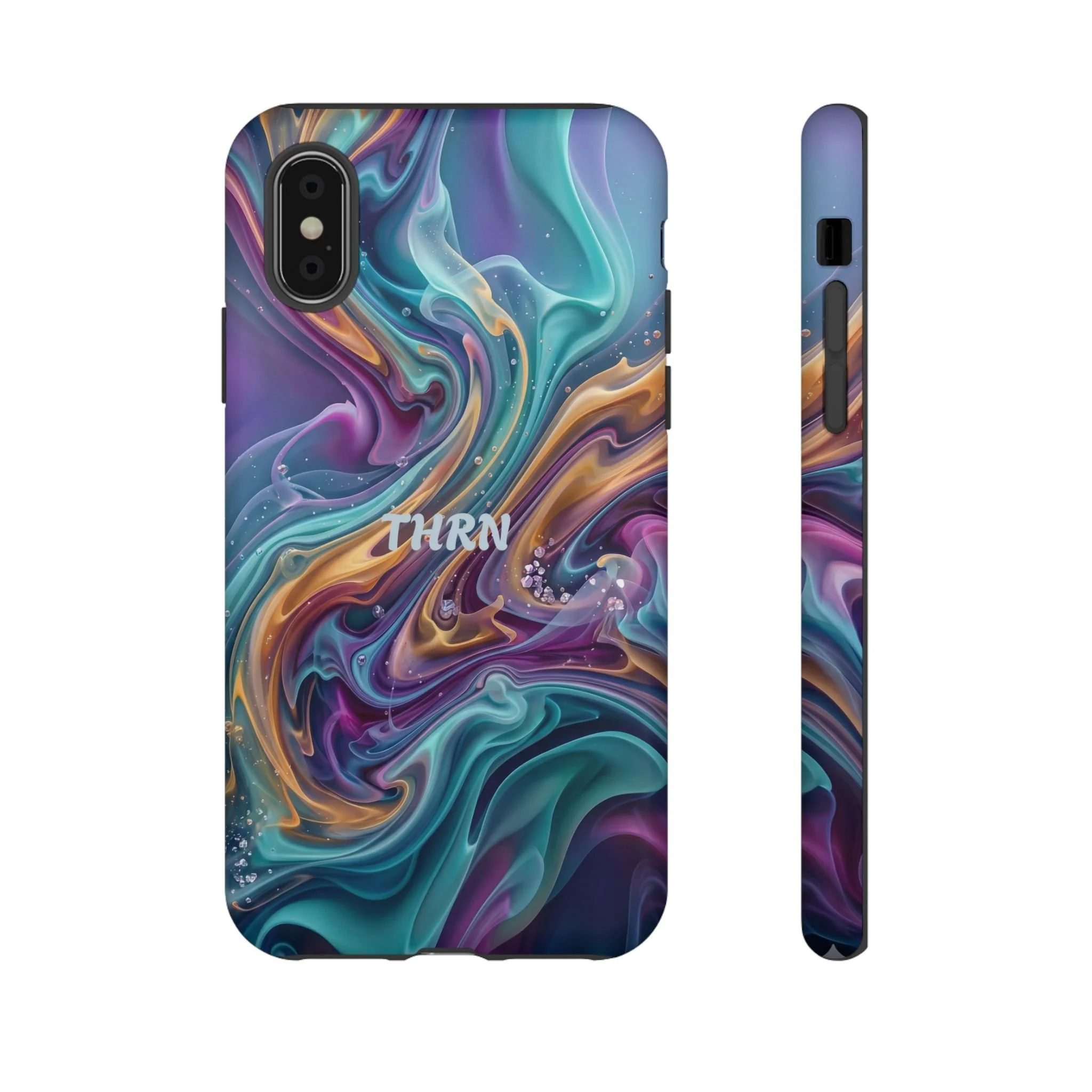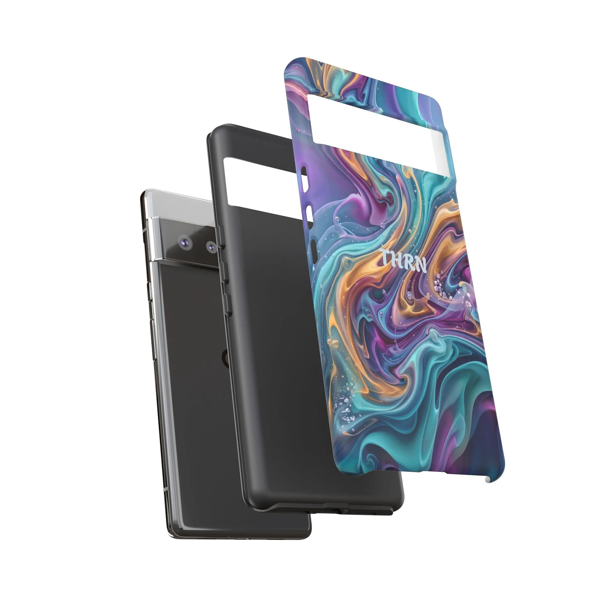 Carry a small piece of fluid art with you. This tough phone case wraps a vibrant swirl of teal, purple, and gold around your device in full-color, high-gloss or matte finishes. It feels solid in hand but cushions shocks with a soft TPU liner, while the rigid polycarbonate shell resists impacts and everyday wear. UV protection keeps the colors rich outdoors, and precise port cutouts preserve easy charging and use. Lightweight and slim, it blends art-forward style with dependable protection for daily life.
