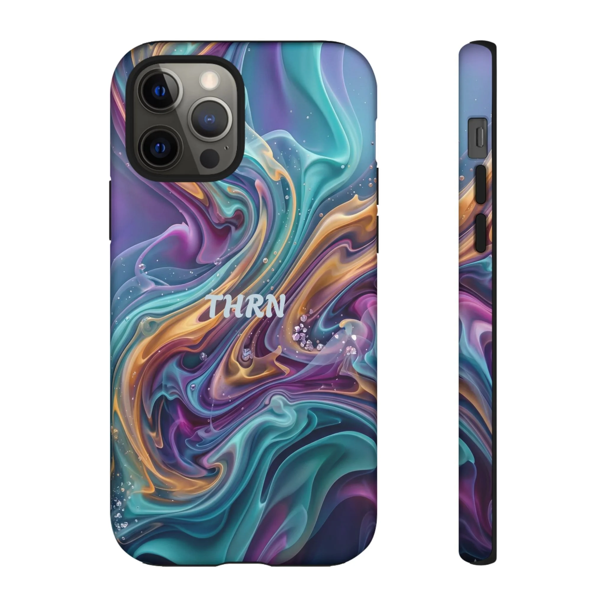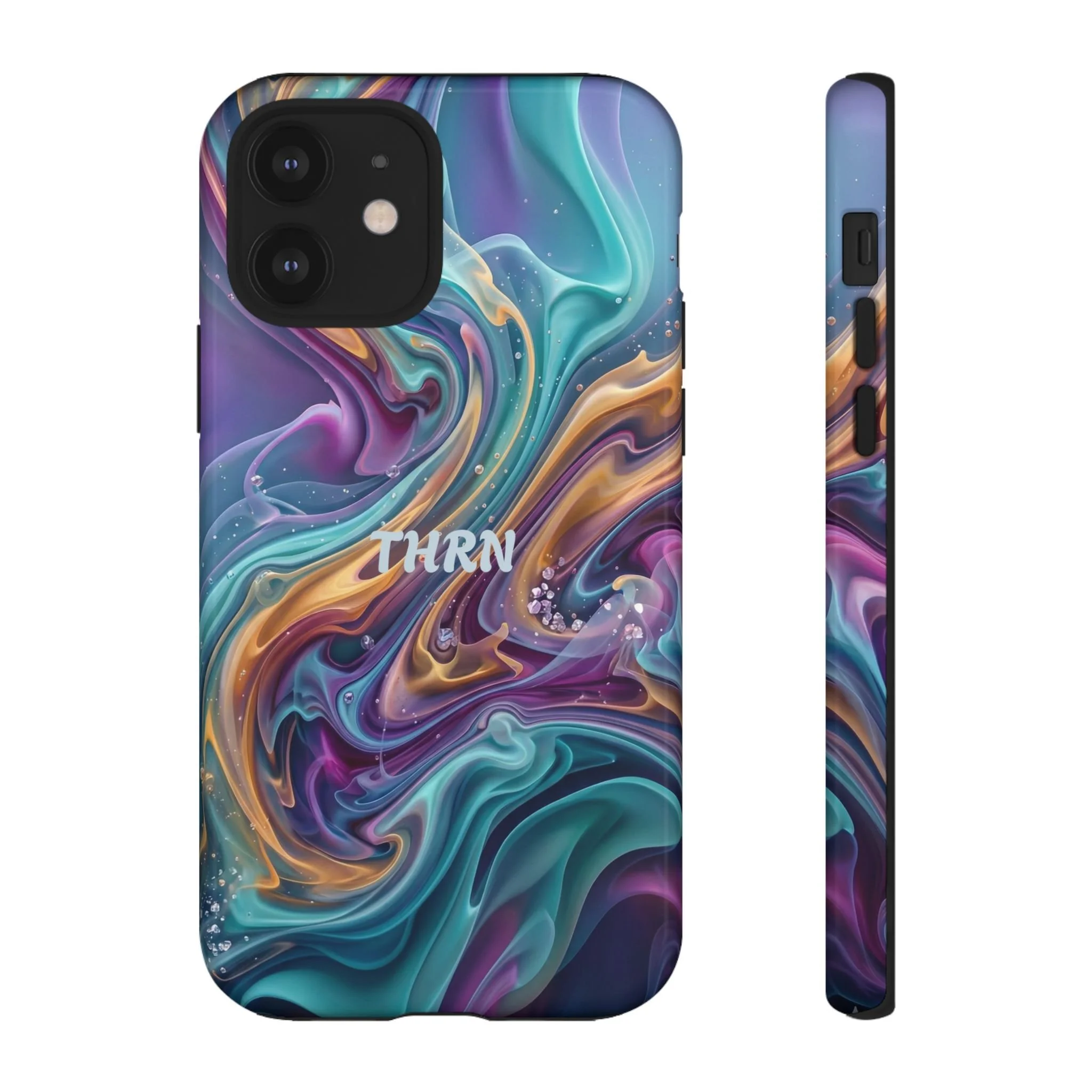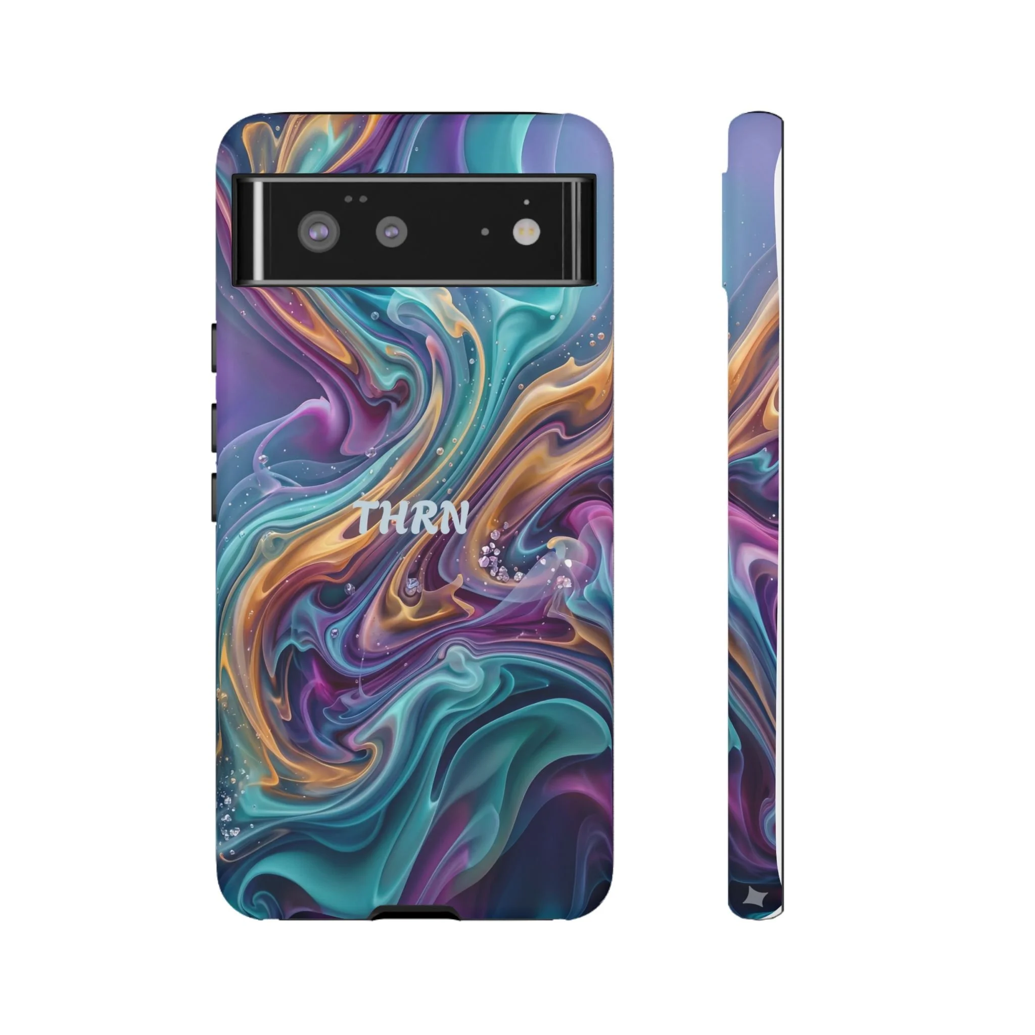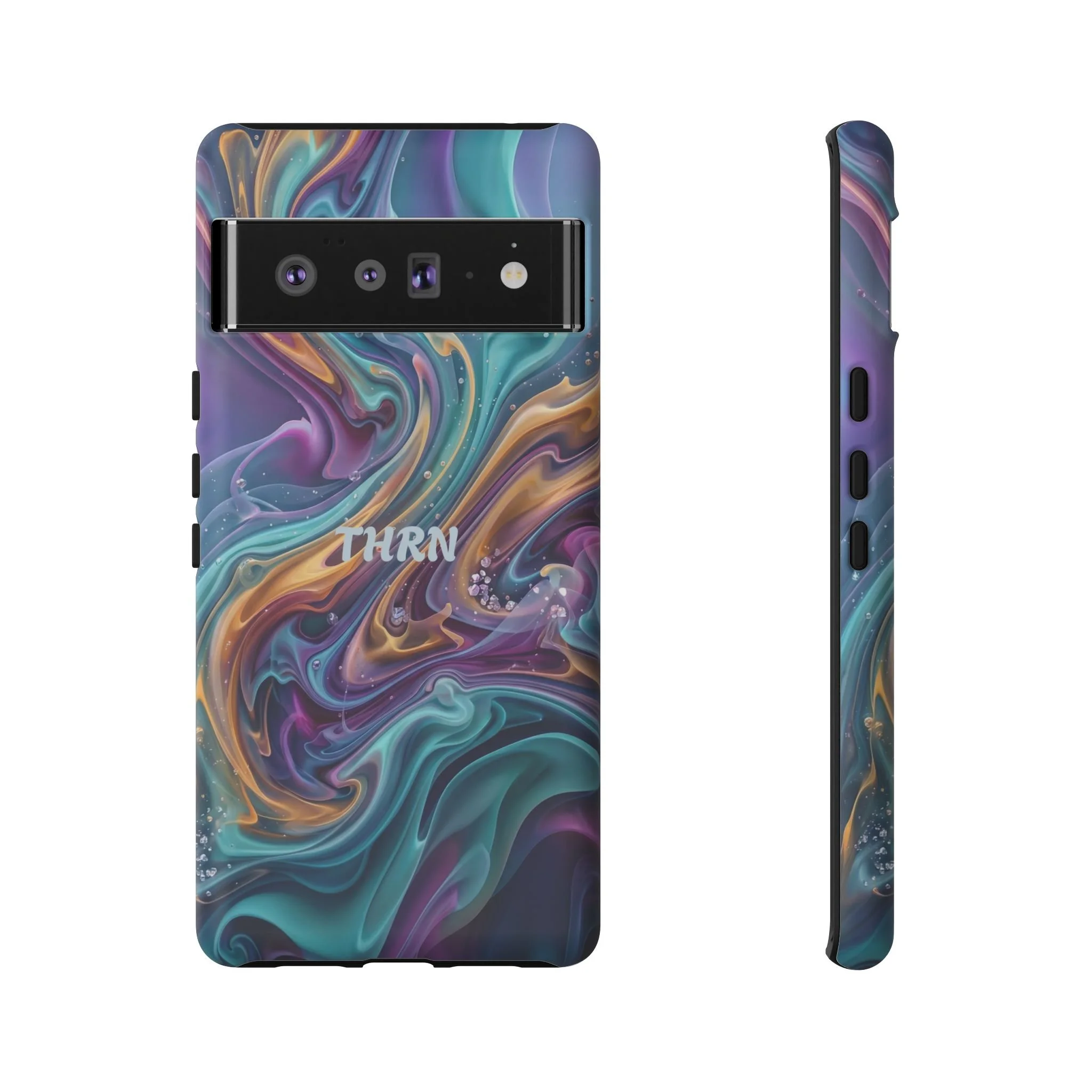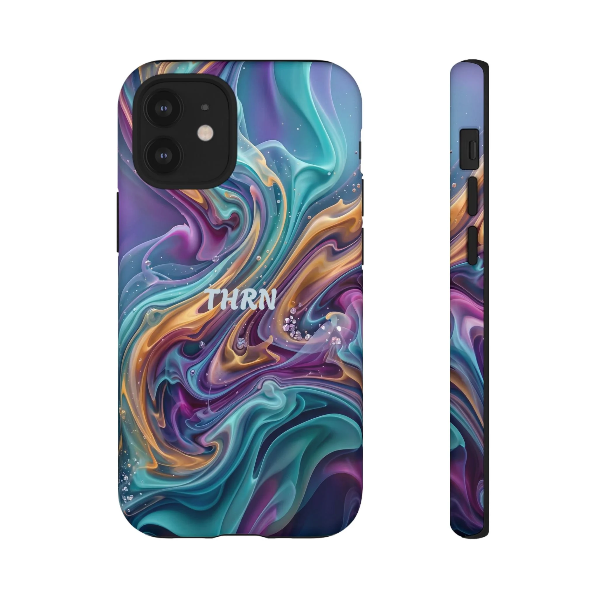 Carry a small piece of fluid art with you. This tough phone case wraps a vibrant swirl of teal, purple, and gold around your device in full-color, high-gloss or matte finishes. It feels solid in hand but cushions shocks with a soft TPU liner, while the rigid polycarbonate shell resists impacts and everyday wear. UV protection keeps the colors rich outdoors, and precise port cutouts preserve easy charging and use. Lightweight and slim, it blends art-forward style with dependable protection for daily life.