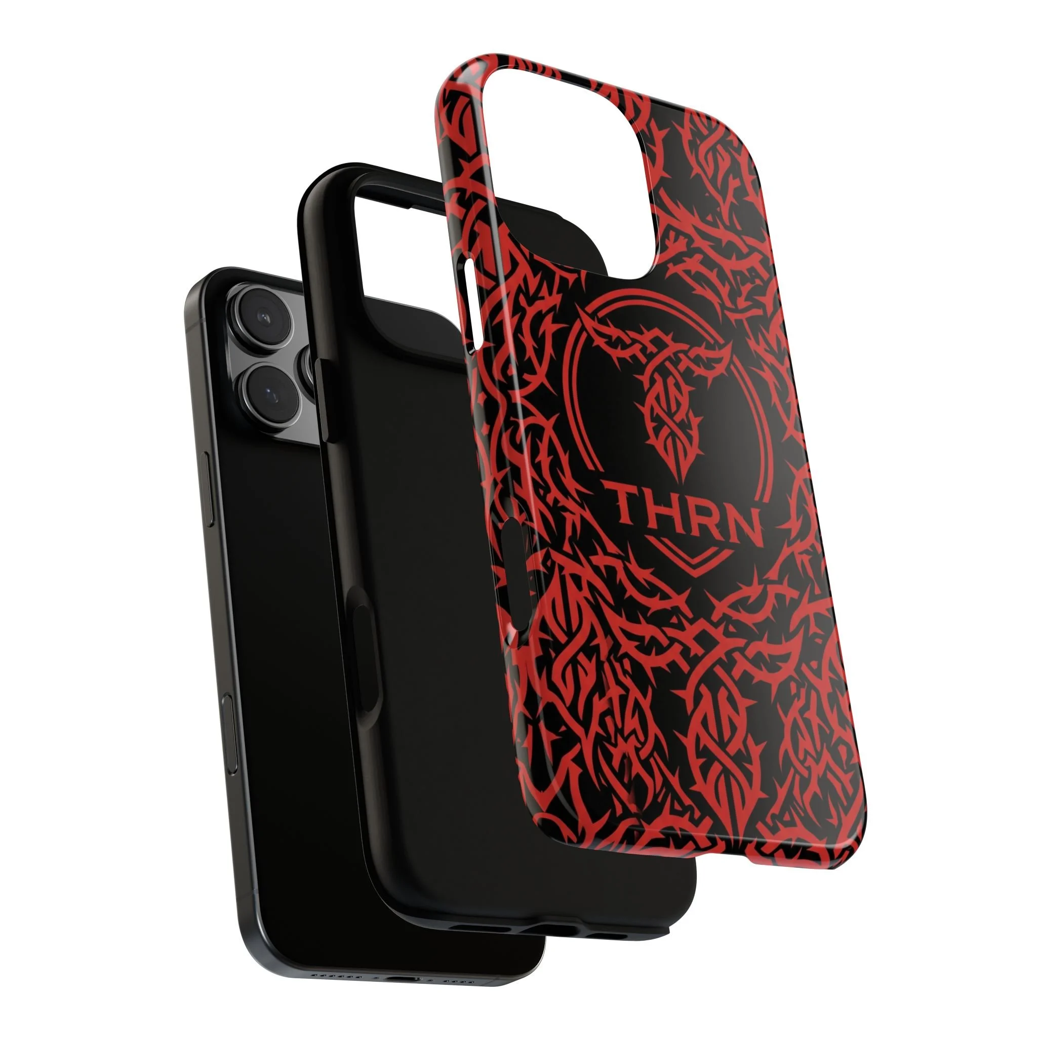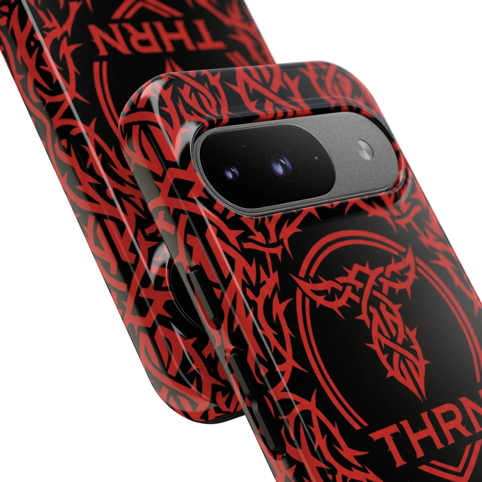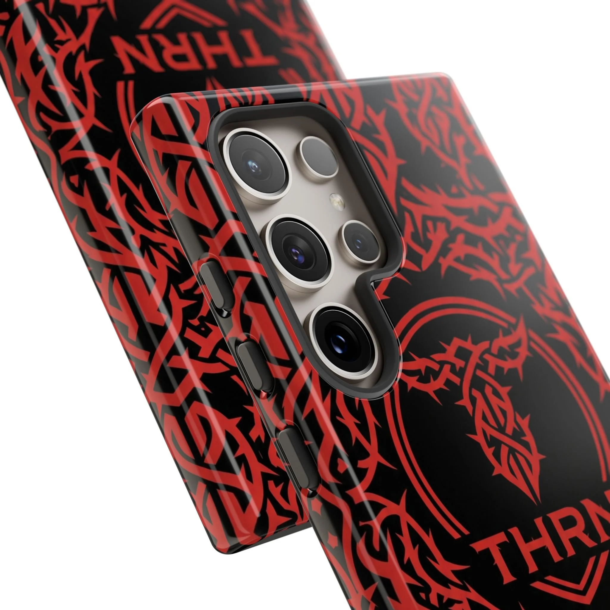 A slim, tough phone case with an all-over tribal pattern and bold red-on-black contrast that reads like an emblem for someone who moves hard and speaks less.