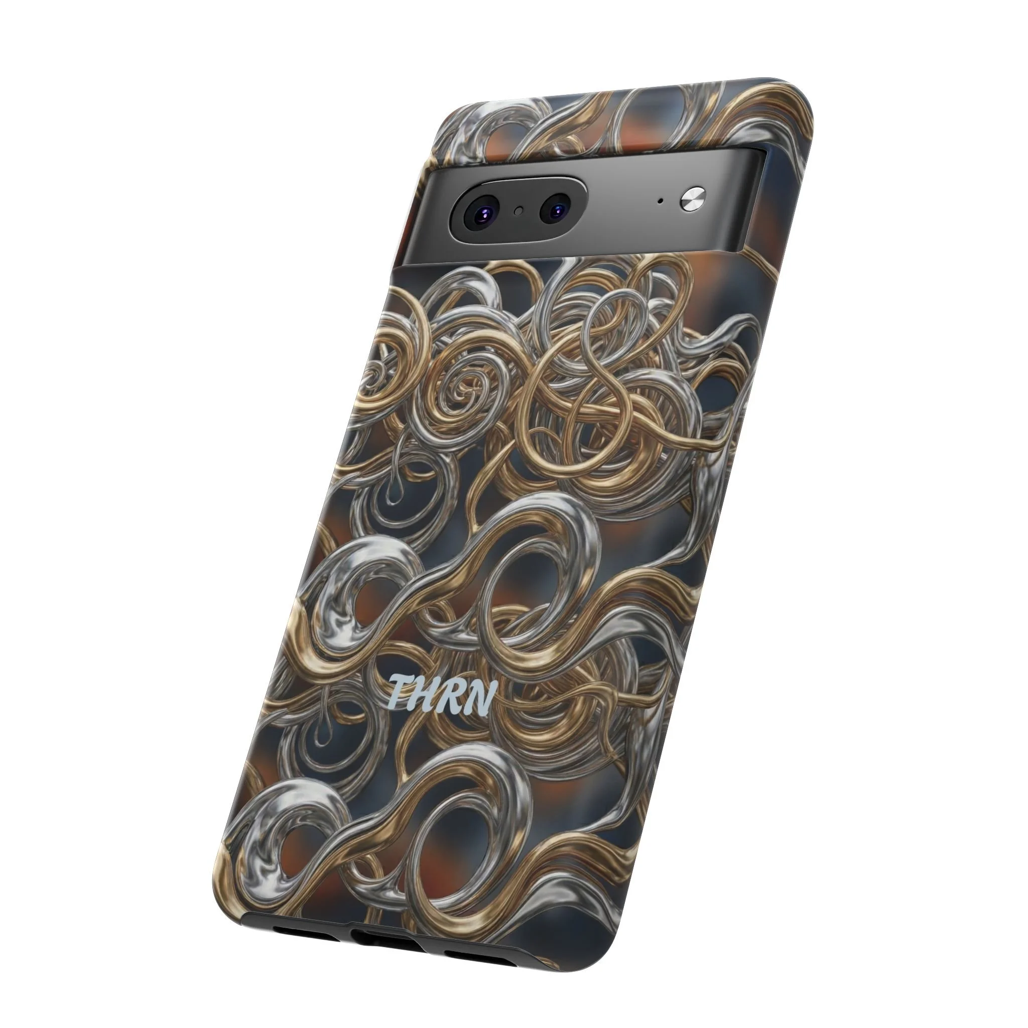 A rugged, stylish phone case that balances industrial edge with everyday practicality. The wraparound metallic loop pattern gives a tactile, chain-mail look that catches light in bronze and steel tones. Dual-layer construction with a glossy or matte finish cushions drops while keeping ports open and wireless charging accessible. Weather-resistant inks and certified materials mean it ages well when treated with care. This case slips into a commuter’s pocket, a maker’s workshop, or a travel bag and stands up to the small collisions of daily life while adding a bold, crafted accent to your phone.